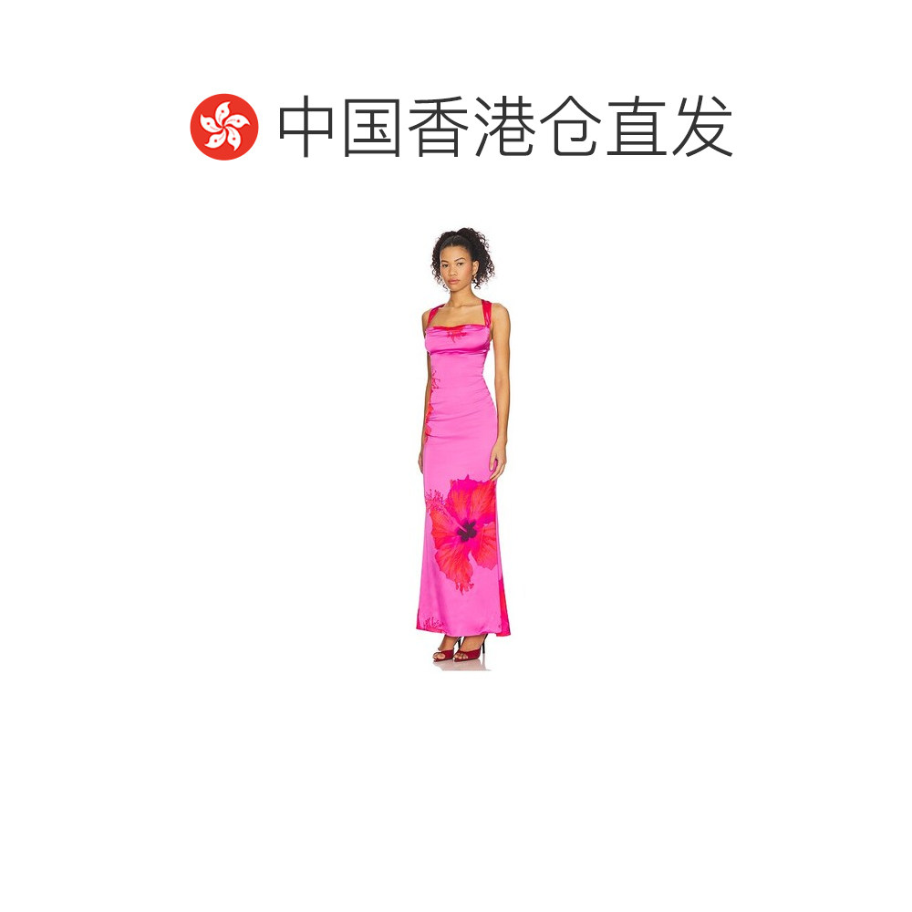 📚 1h可退 香港直邮GOOD AMERICAN 女士 缎面绑带长款连衣裙 GDW0255