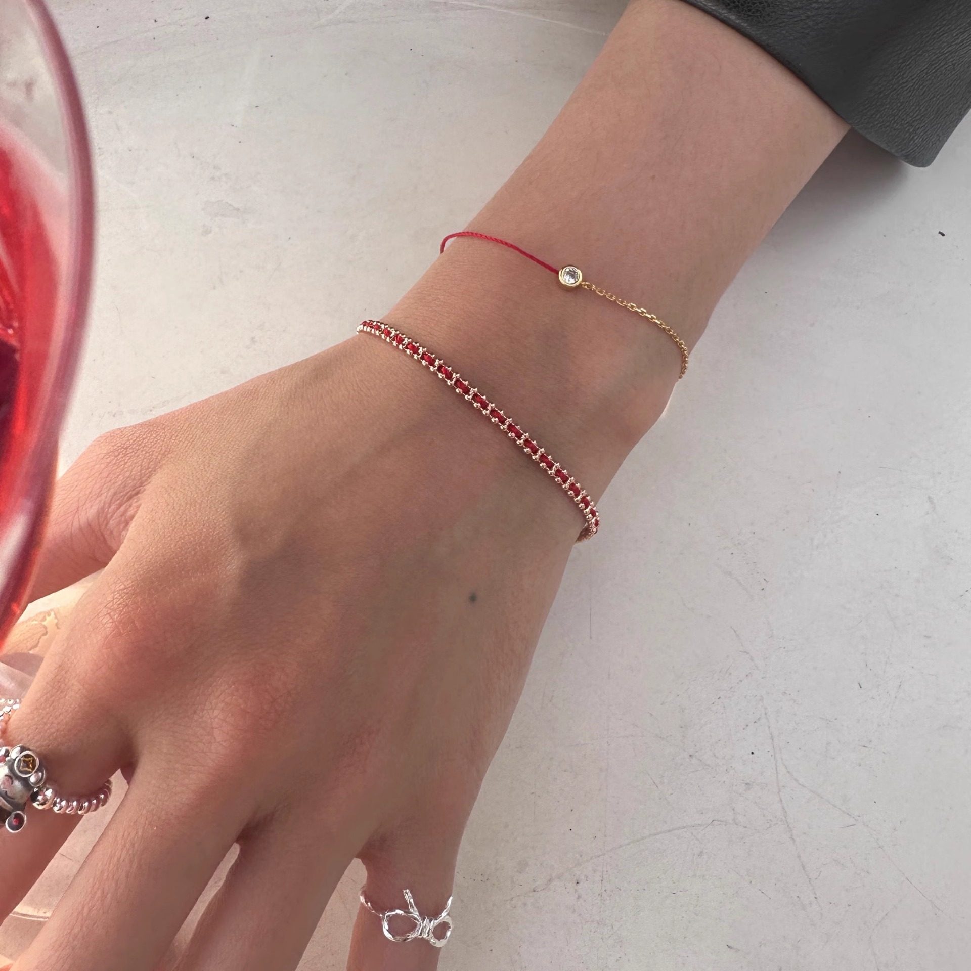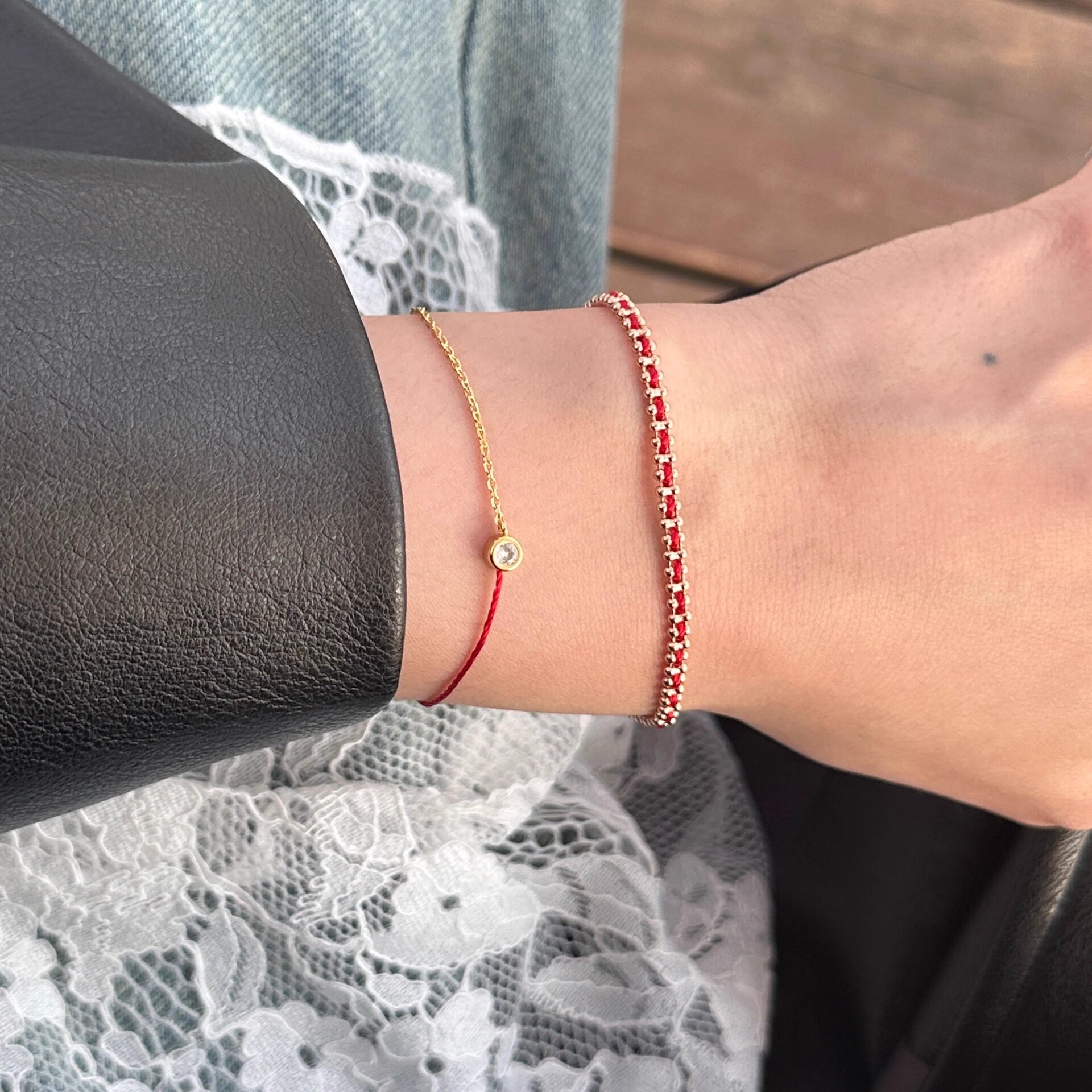 📚 U.CA法式redline王昶同款手链镀18k金本命年单钻红绳半绳半链手饰