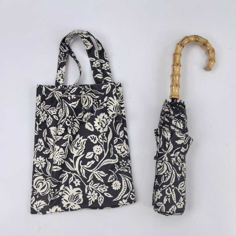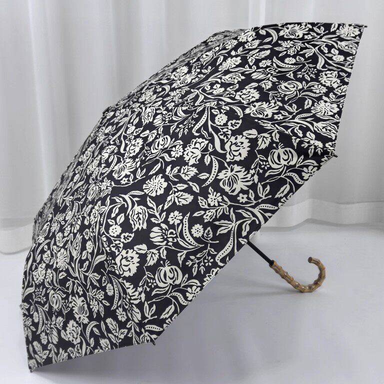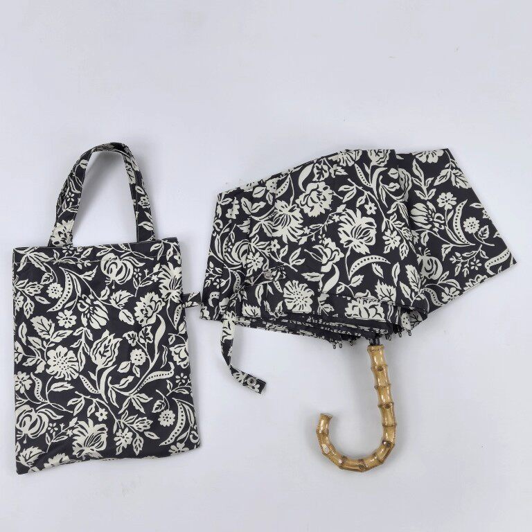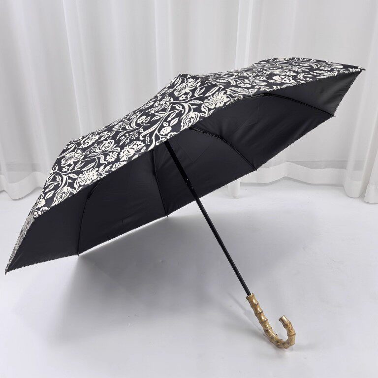 📚 【黑色繁花】慵懒风日式竹节三折手动黑胶晴雨两用防风轻量折叠伞