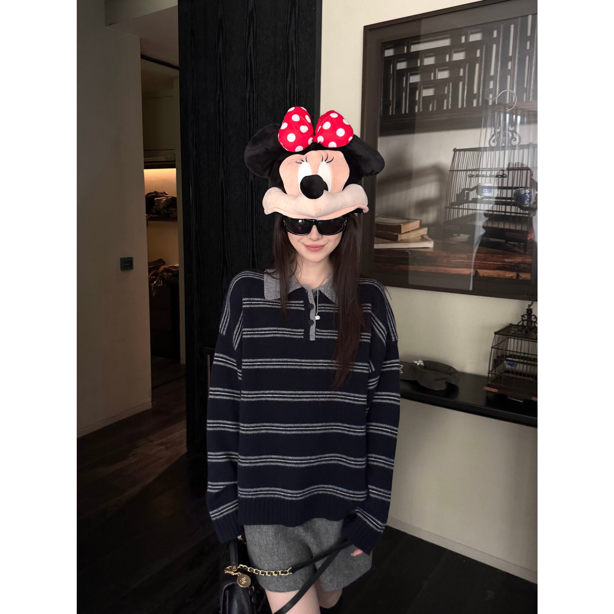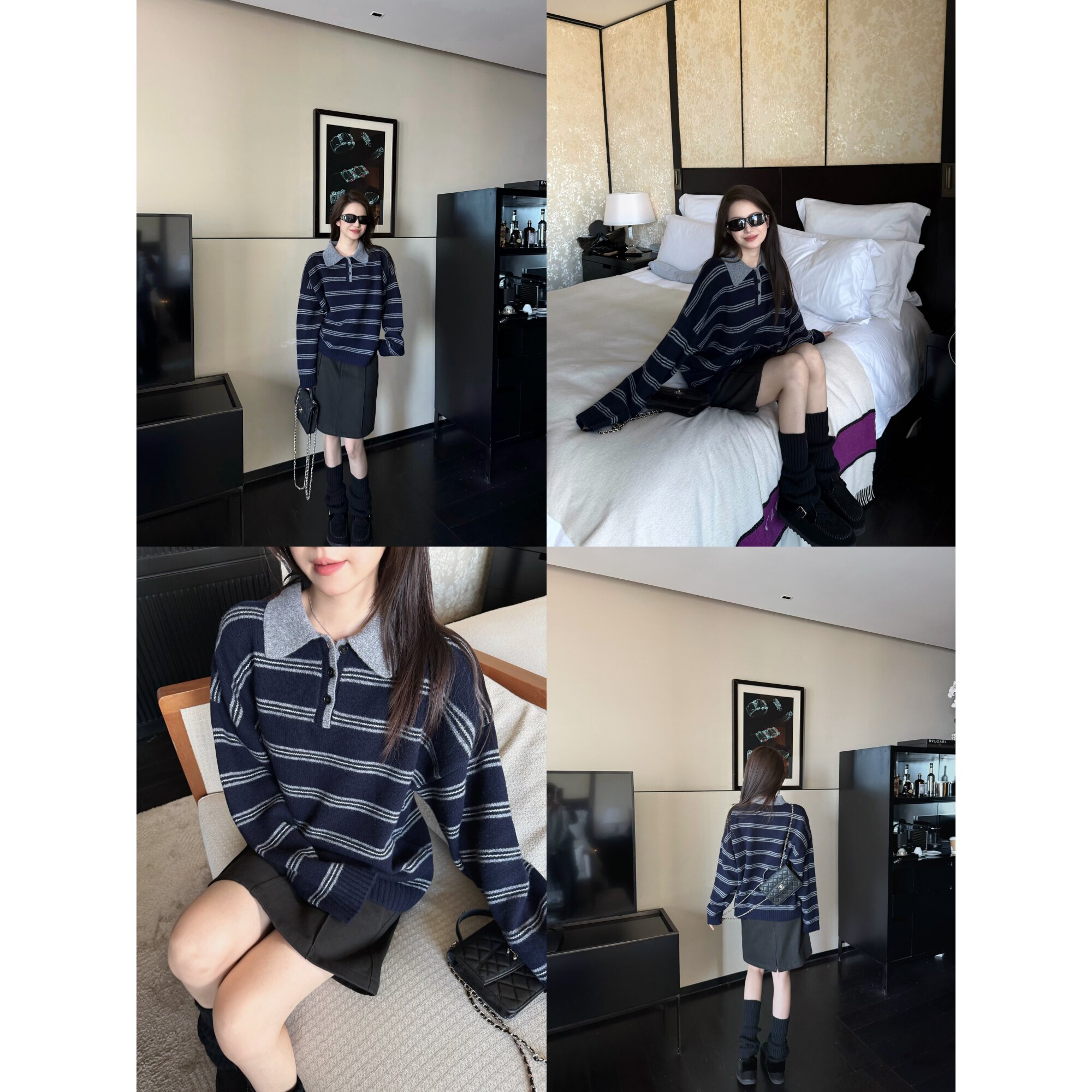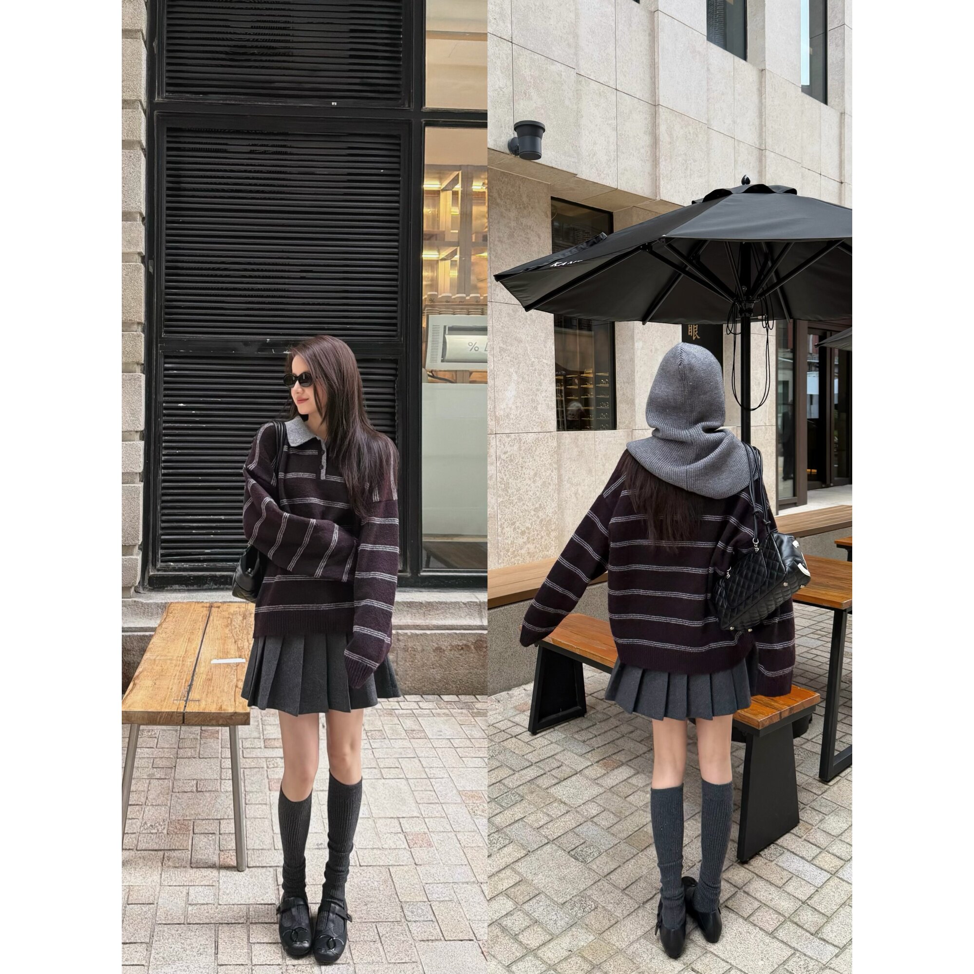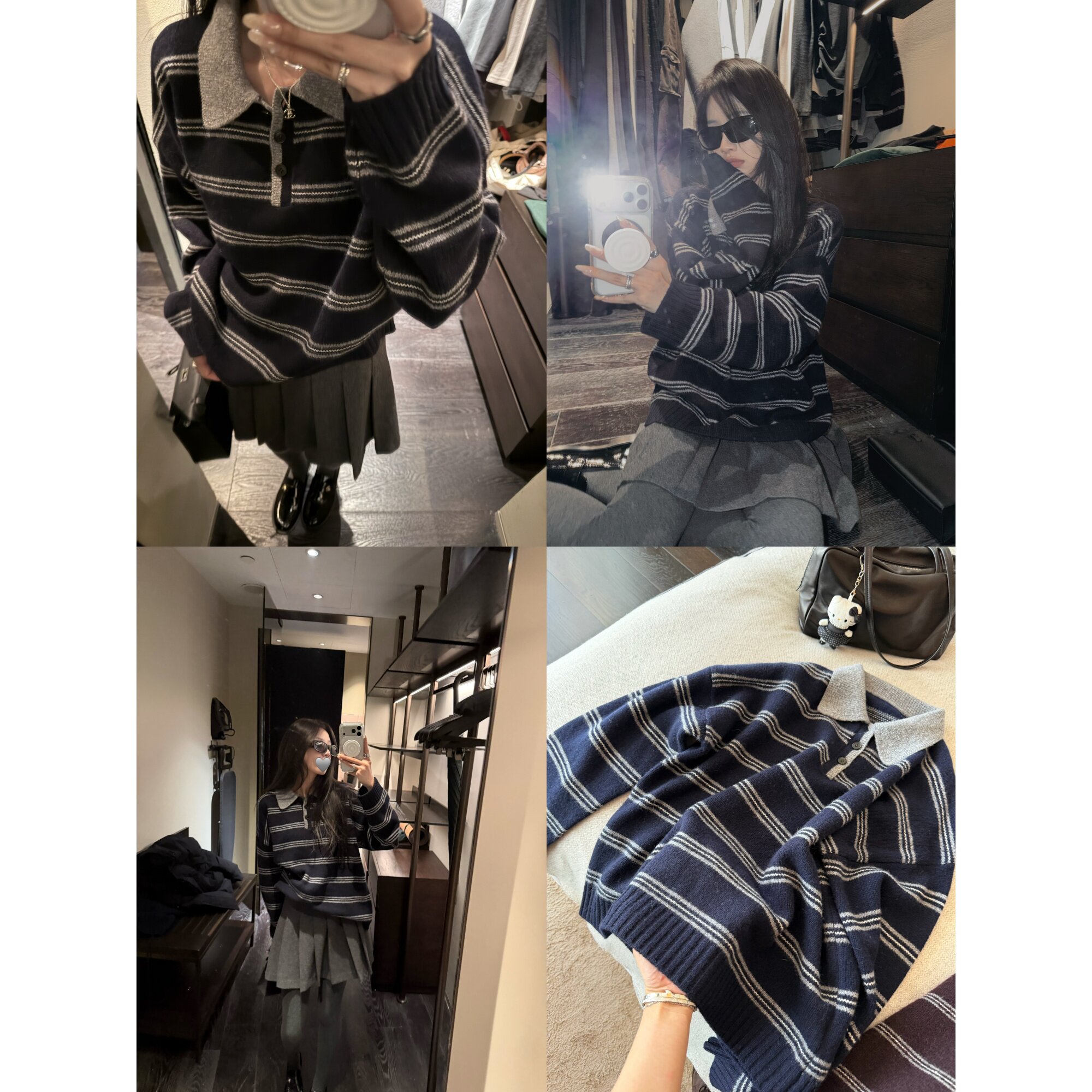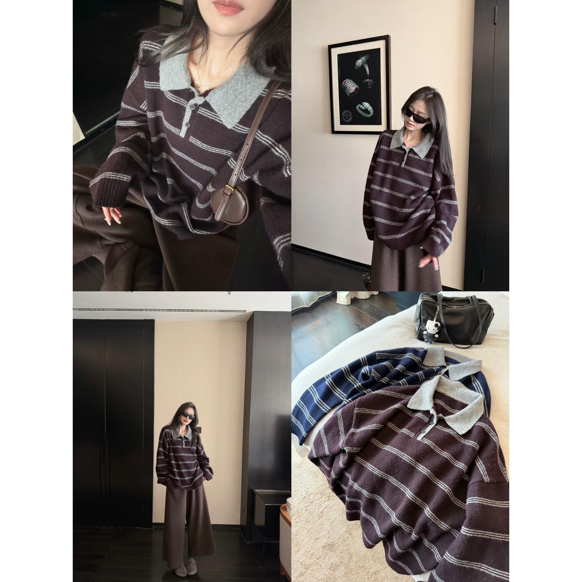 📚 '高智老头polo衫'含羊毛学院风翻领复古条纹宽松落肩毛衣针织上衣