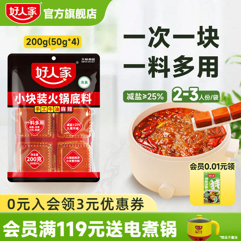 📚 【秒杀】好人家牛油火锅底料200g小块包装一人份减盐便携麻辣烫料