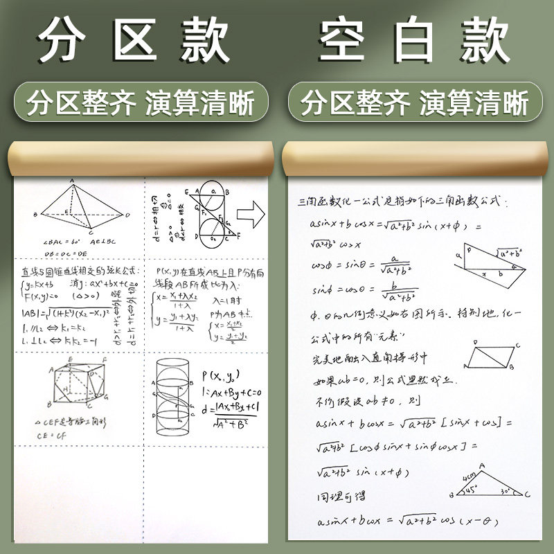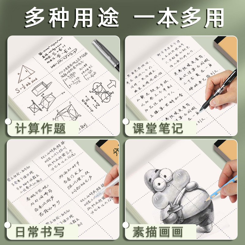 📚 得力分区草稿本小学生专用空白数学演草考研草搞纸初中生演算稿纸抄稿本子白纸高中生大学生护眼打草文具草算