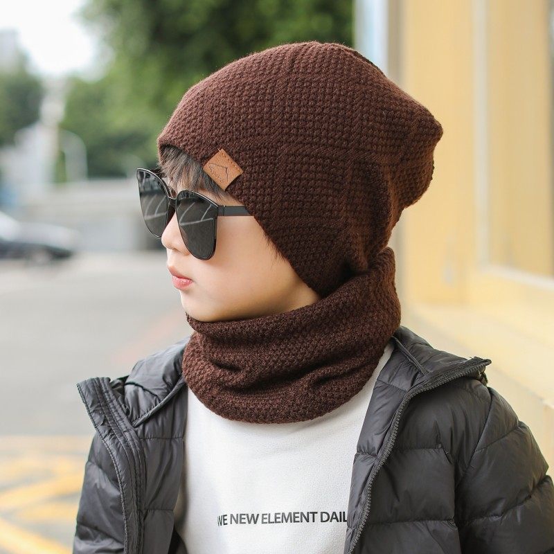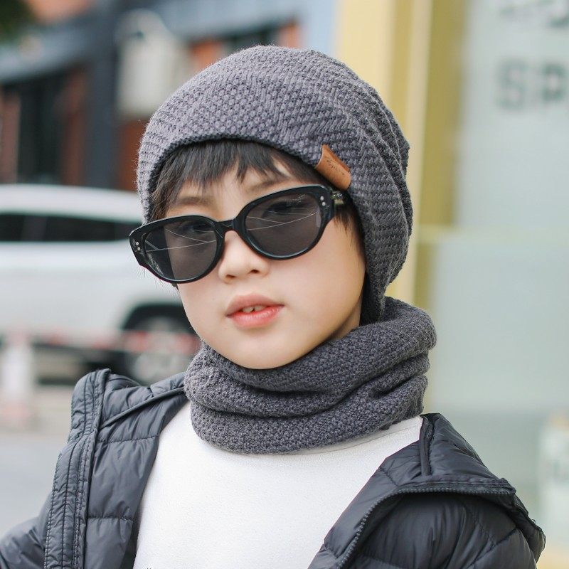 📚 男大童冬天帽子帅气皮标学生滑冰帽骑车户外加绒套头帽围脖两件套