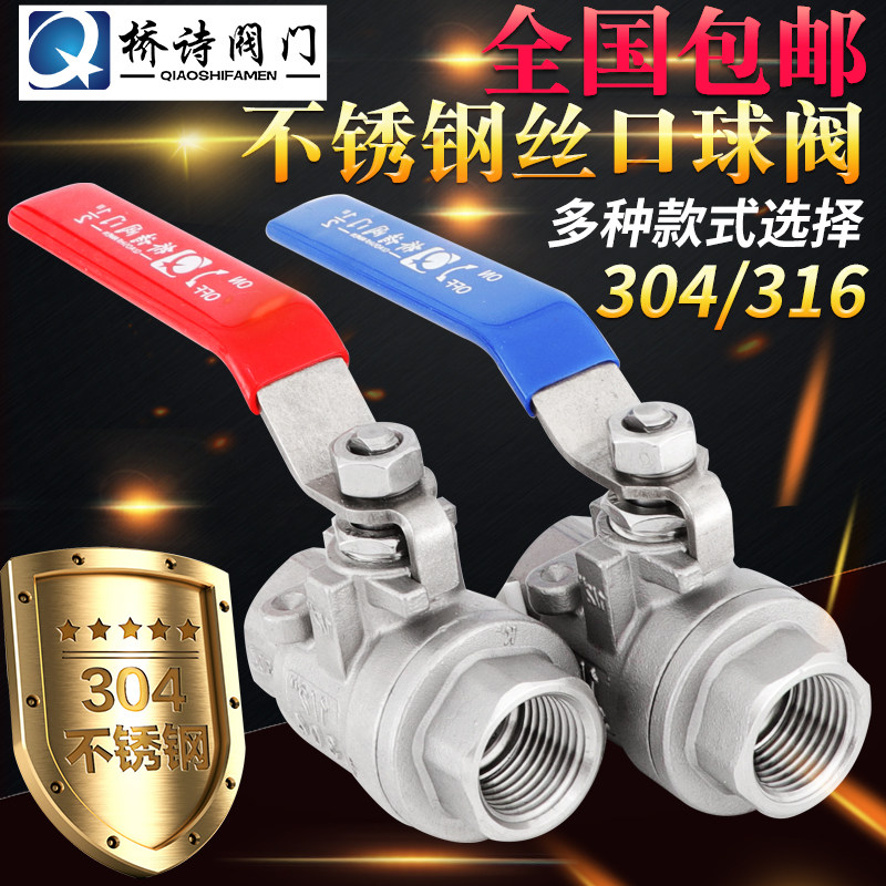 📚 304不锈钢球阀4分丝口内螺纹两片式阀门水开关316材质6分重型包邮
