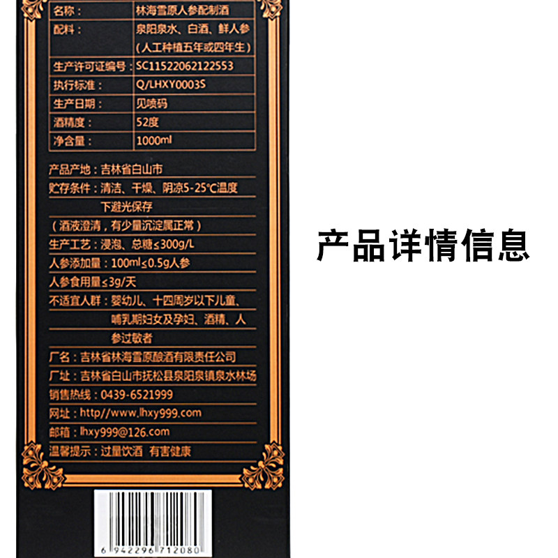 📚 【2022年生产】人参酒林海雪原老参王长白山特产人参配制酒52度1L