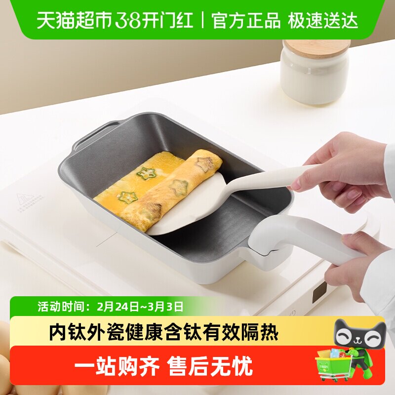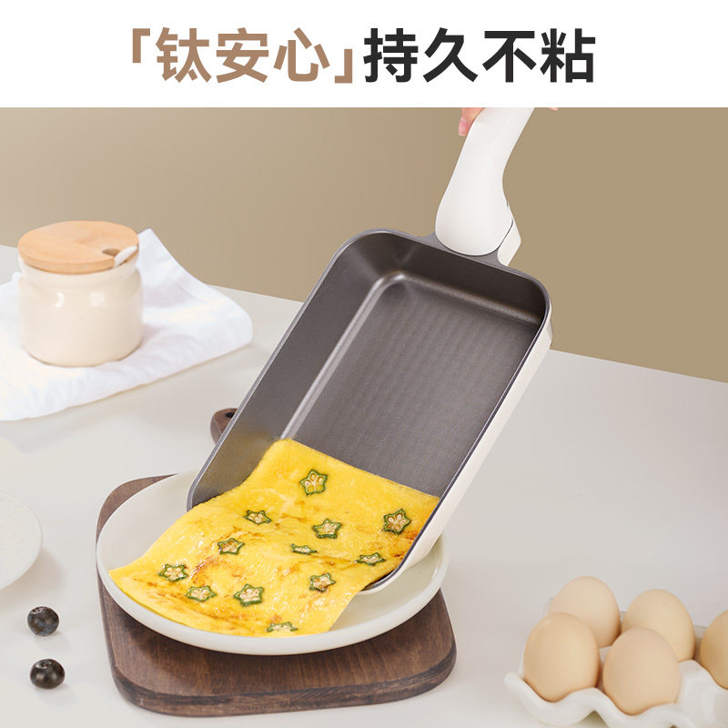 📚 Jeetee吉特有钛陶瓷玉子烧锅家用平底煎锅不粘锅煎蛋神器方形煎锅