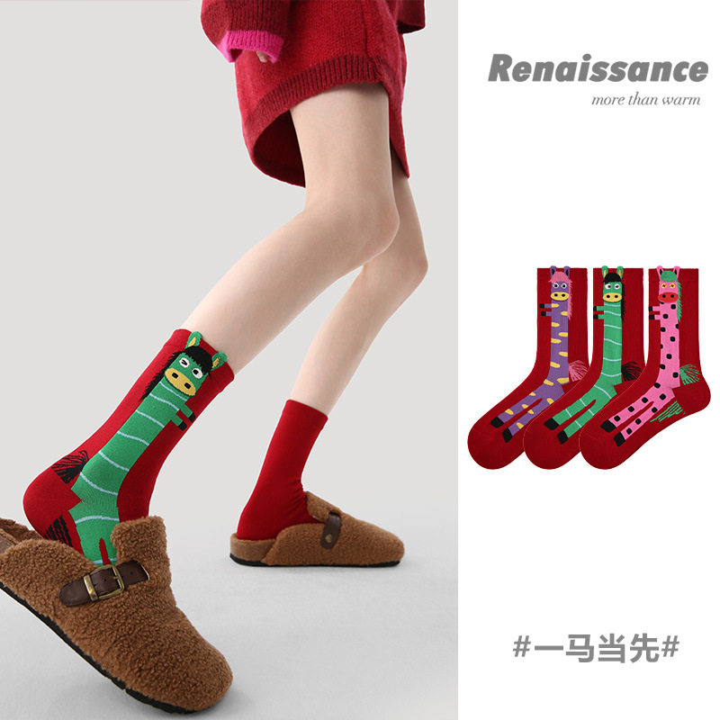 📚 【下单立减50】大红色袜百搭可爱属马本命年运动袜情侣中筒袜_F