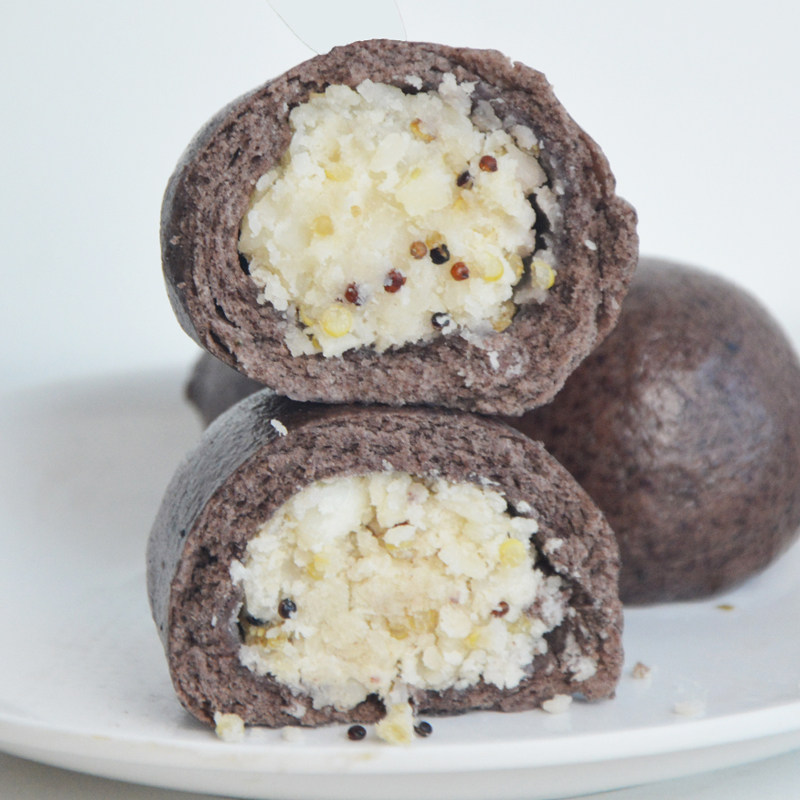 📚 黑米藜麦山药包子杂粮馒头学生儿童营养早餐主食半成品加热即食速