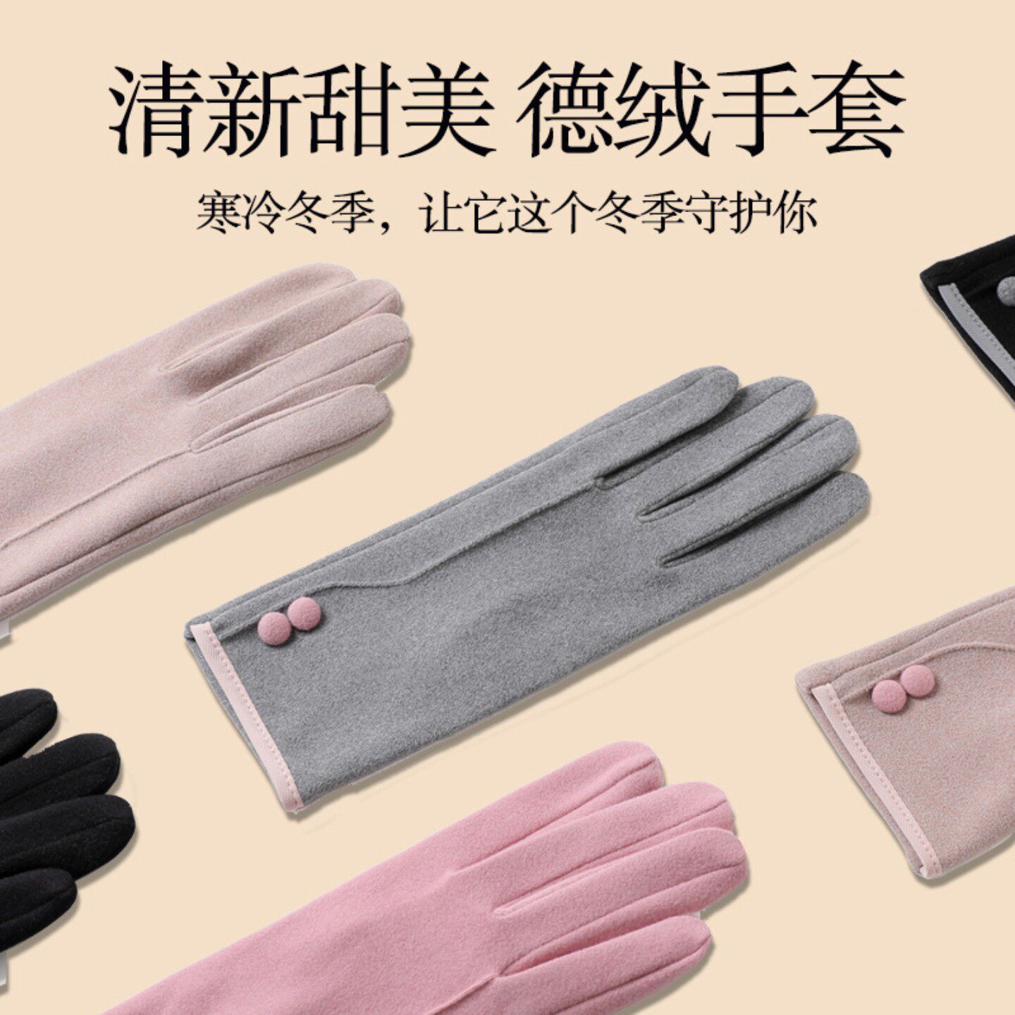 📚 德绒保暖手套女冬季可触屏骑行开车防寒春秋单层薄款防风手套内胆