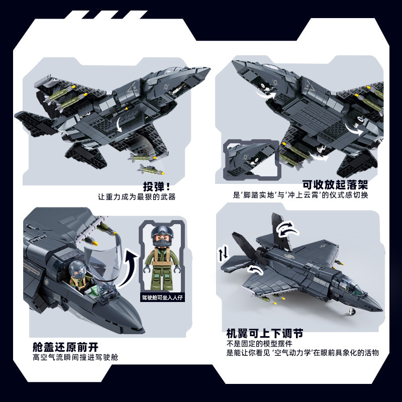 📚 小鲁班积木军事F35B隐形战斗机飞机模型潮玩拼装玩具益智男孩礼物