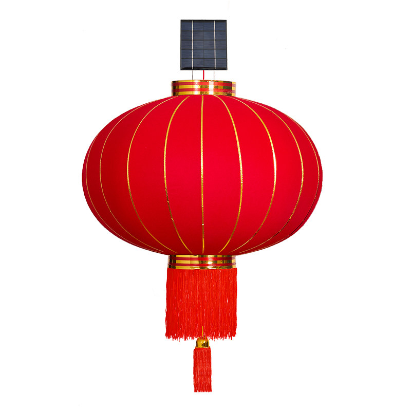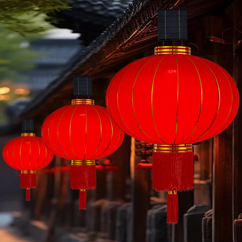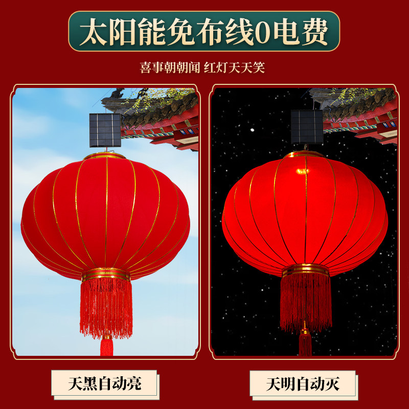 📚 新款2026免布线太阳能大红植绒布灯笼过年春节新年大门口阳台一对
