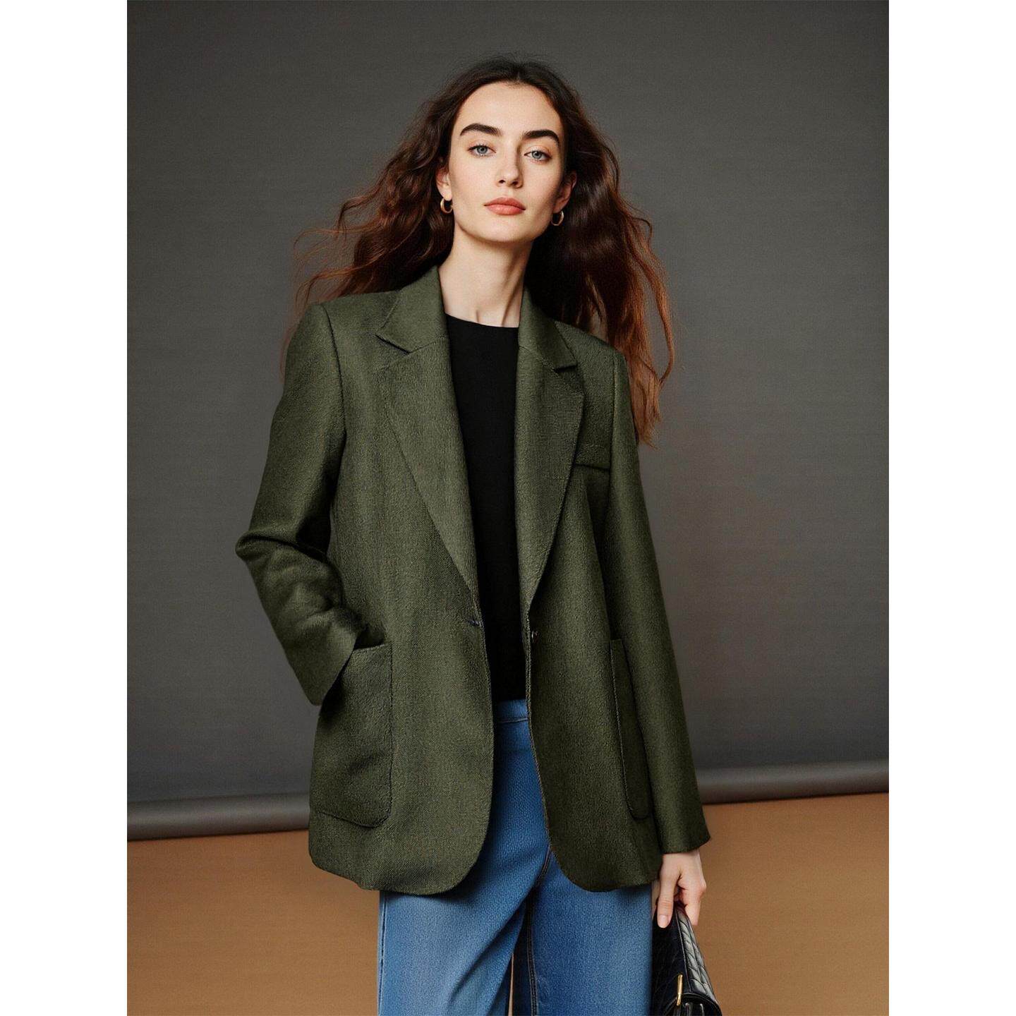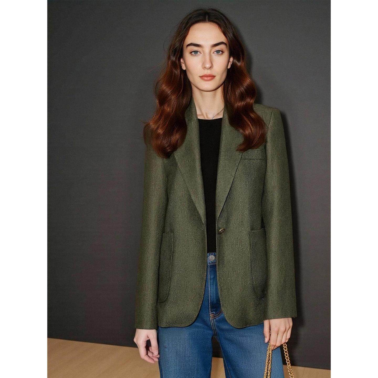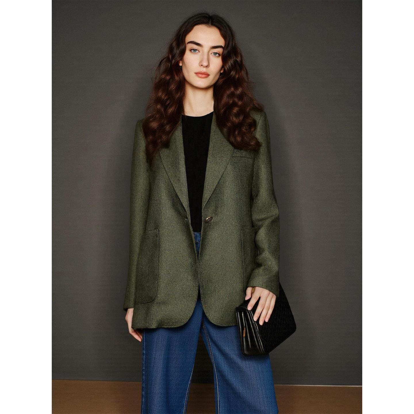 📚 Basic House/百家好橄榄绿色西装外套女2026春季新款宽松廓形西服
