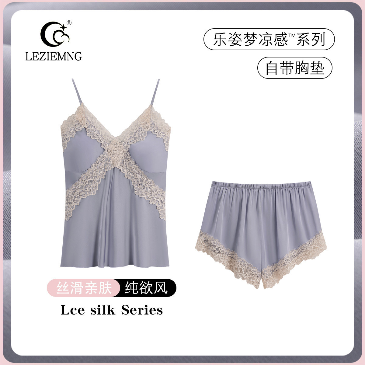 📚 乐姿梦冰丝睡衣女夏天吊带短裤睡衣性感两件套装带胸垫薄款家居服