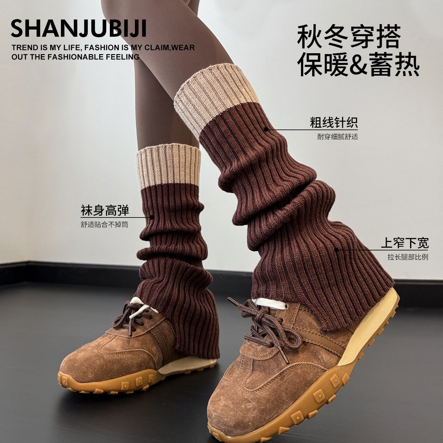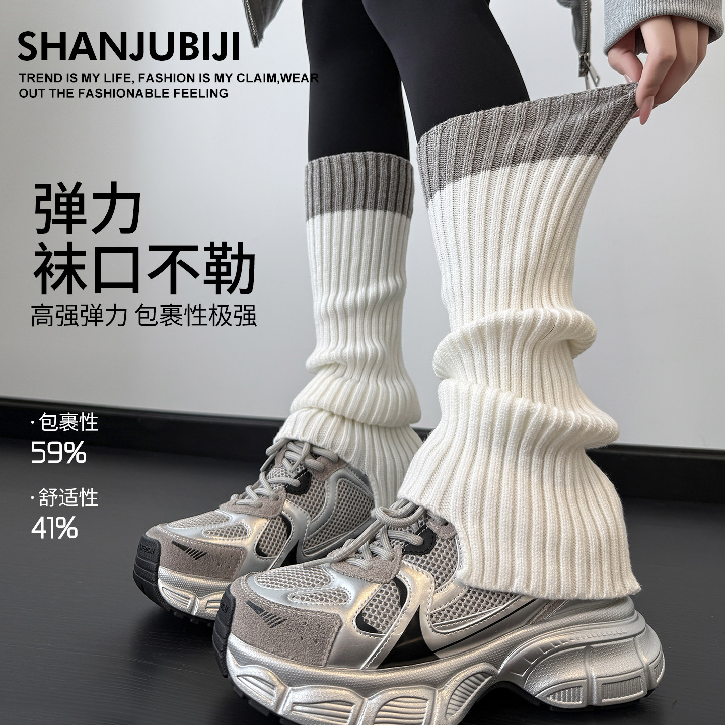 📚 灰色袜套堆堆袜女款显瘦小腿袜子秋冬加厚保暖针织腿套长筒配靴子
