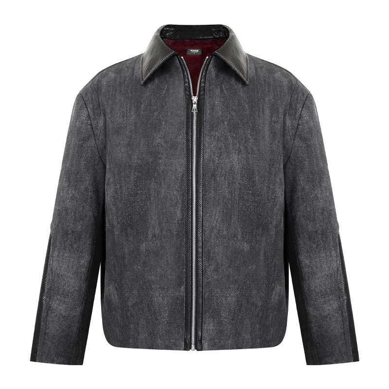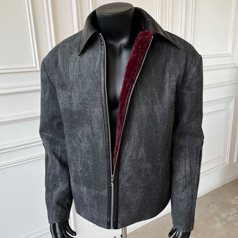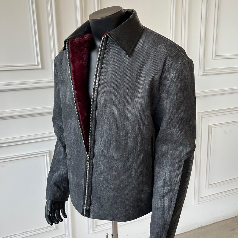 📚 WESSK暗潮蟒3.0仿兔毛加厚宝塔蛇纹加厚翻领正肩夹克冬季外套男