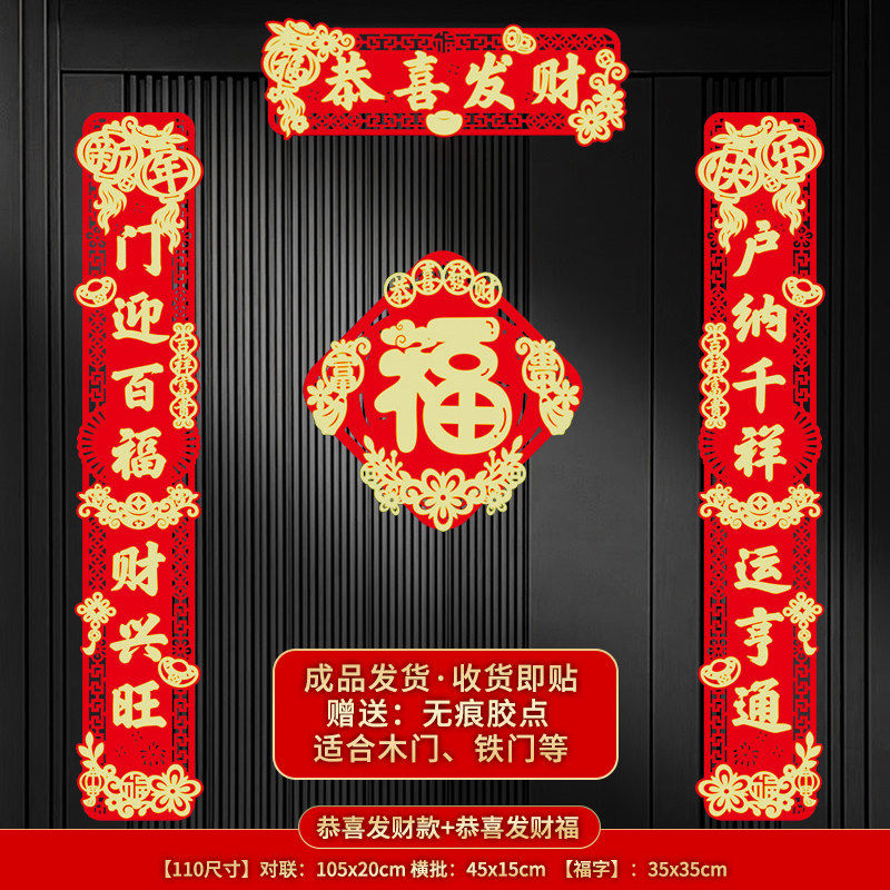 📚 春节对联2026马年新款过年大门布置新年门贴装饰春联植绒磁吸木门