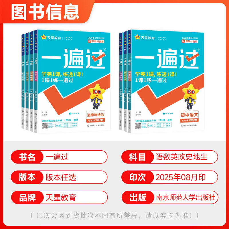 📚 2026春 一遍过七年级下册 语文数学英语政治历史地理生物人教版七年级下册上册同步训练练习 初中一遍过七下