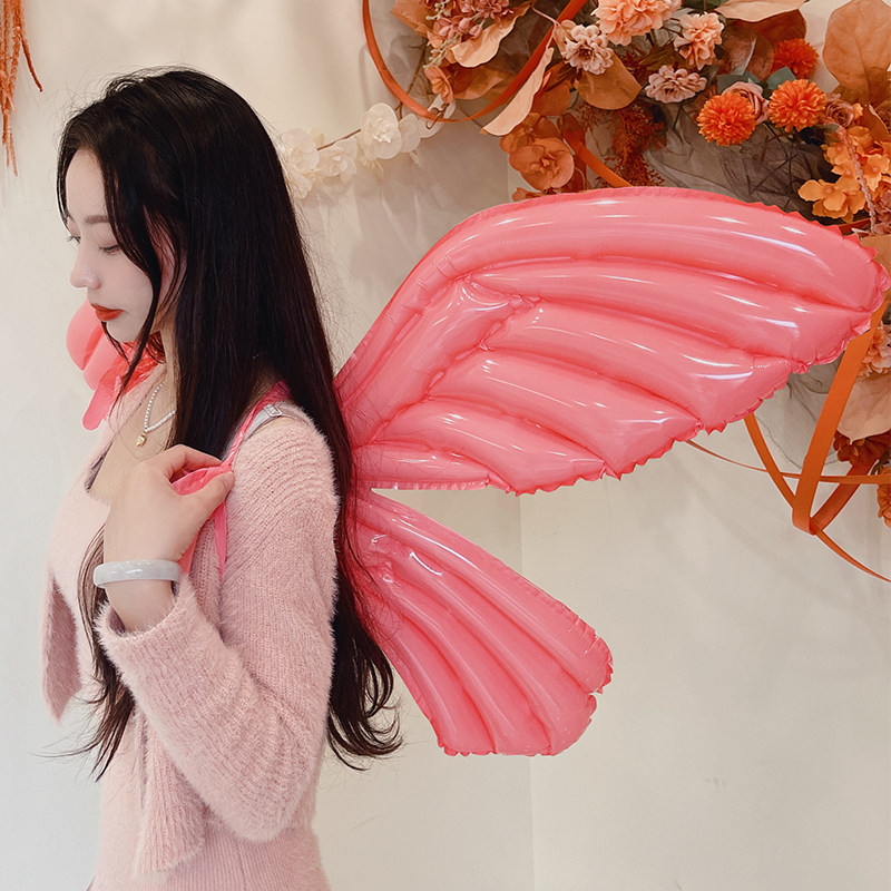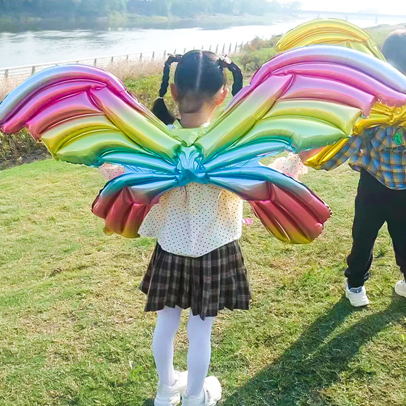 📚 翅膀充气气球儿童天使地摊冲气铝膜夜气球市网红彩色蝴蝶摆摊背饰