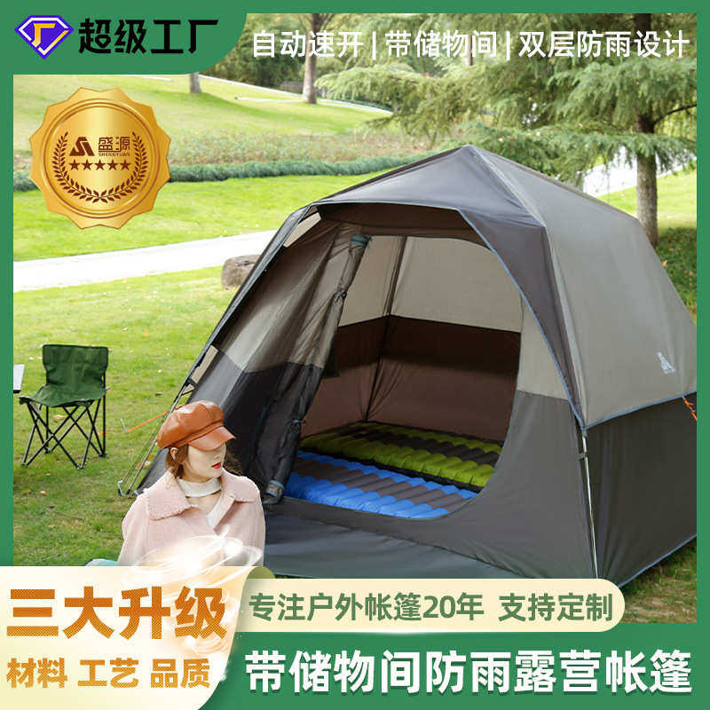 📚 户外野营全自动3-4-5人多人双层露营防雨帐篷tent