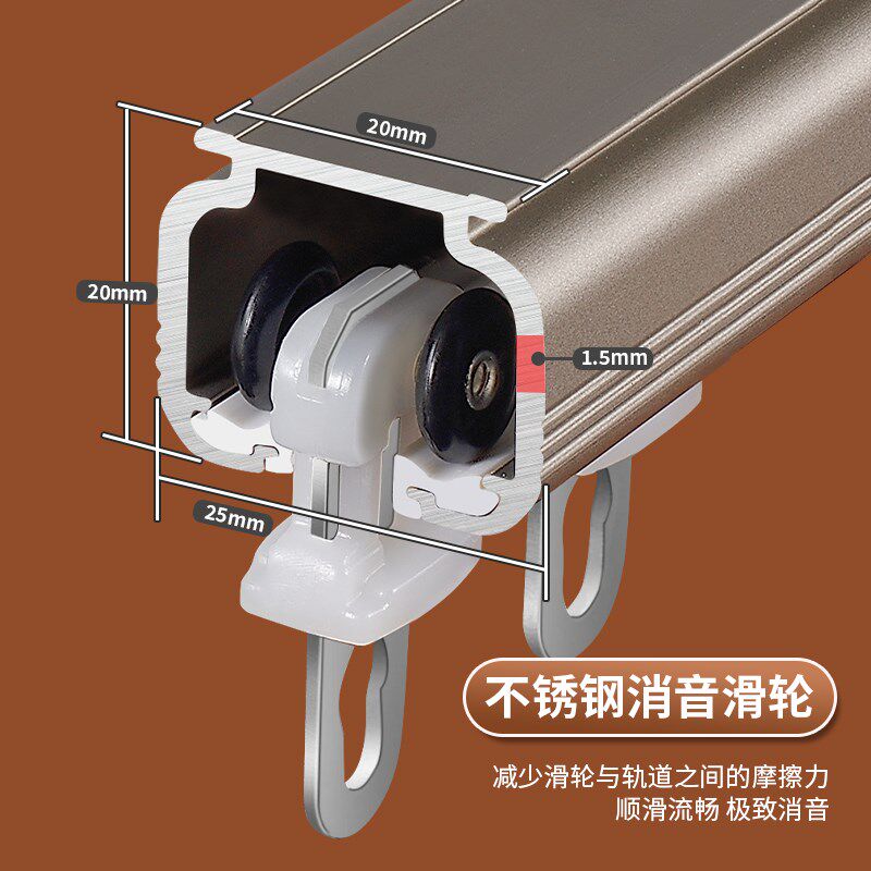 📚 静音交叉窗帘轨道铝合金加厚顶装侧装单双滑轨直轨