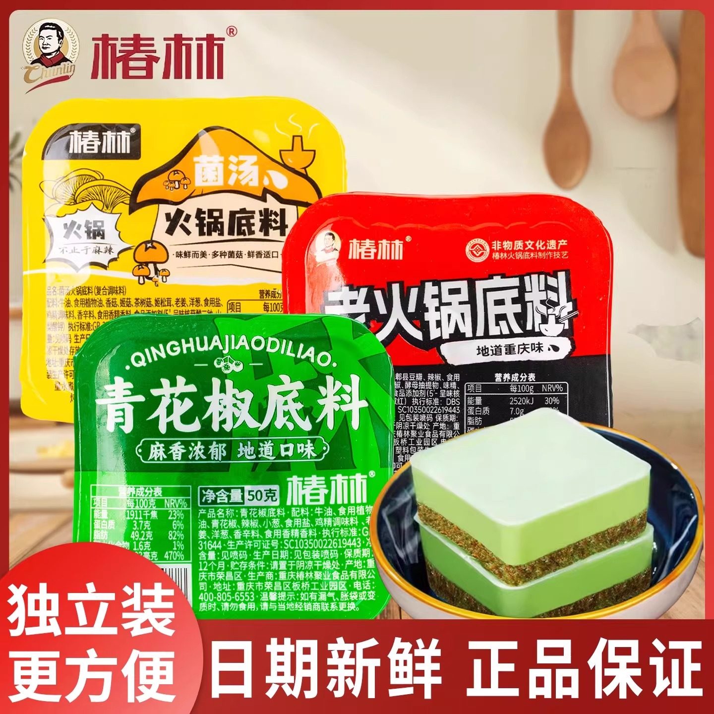 📚 牛油老火锅底料菌汤清汤青花椒50g/盒装家用独立小包装炒菜底料