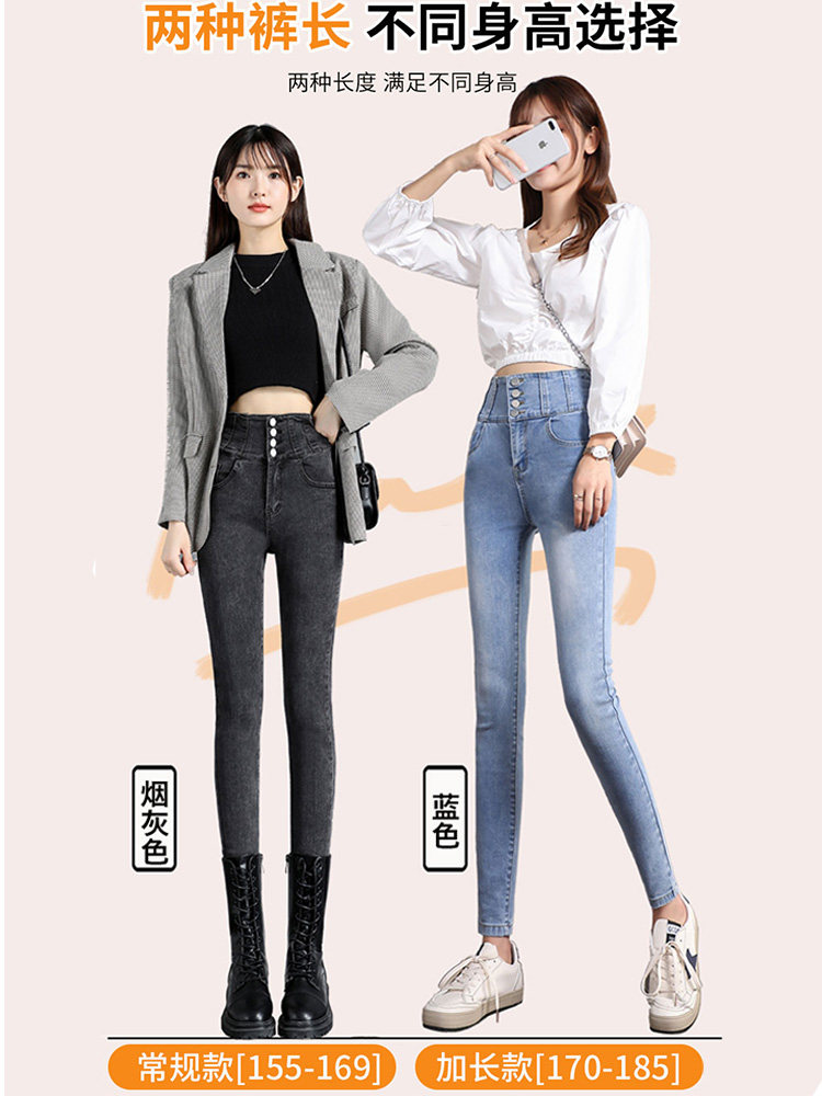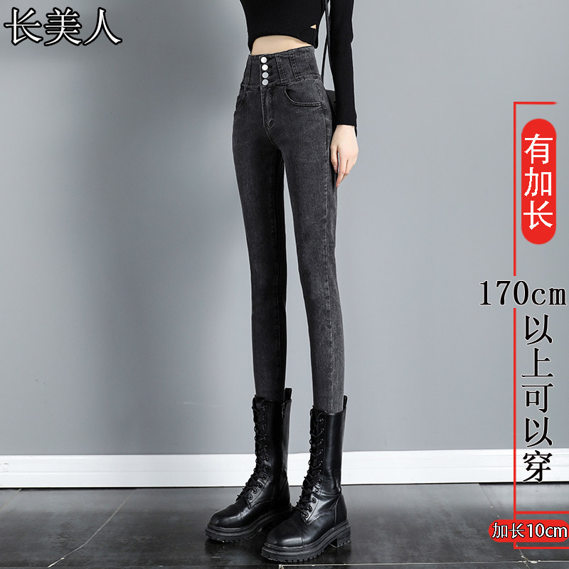 📚 加长加绒加厚高腰牛仔裤女高个子烟灰秋冬紧身显瘦小脚铅笔裤314