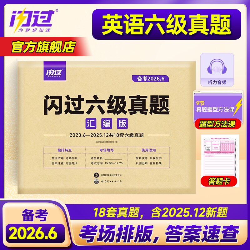 📚 【官方店】备考2026年6月闪过大学英语六级真题试卷六级考试英语资料套卷词汇书单词听力阅读写作翻译专项训练cet6级历年真题卷子