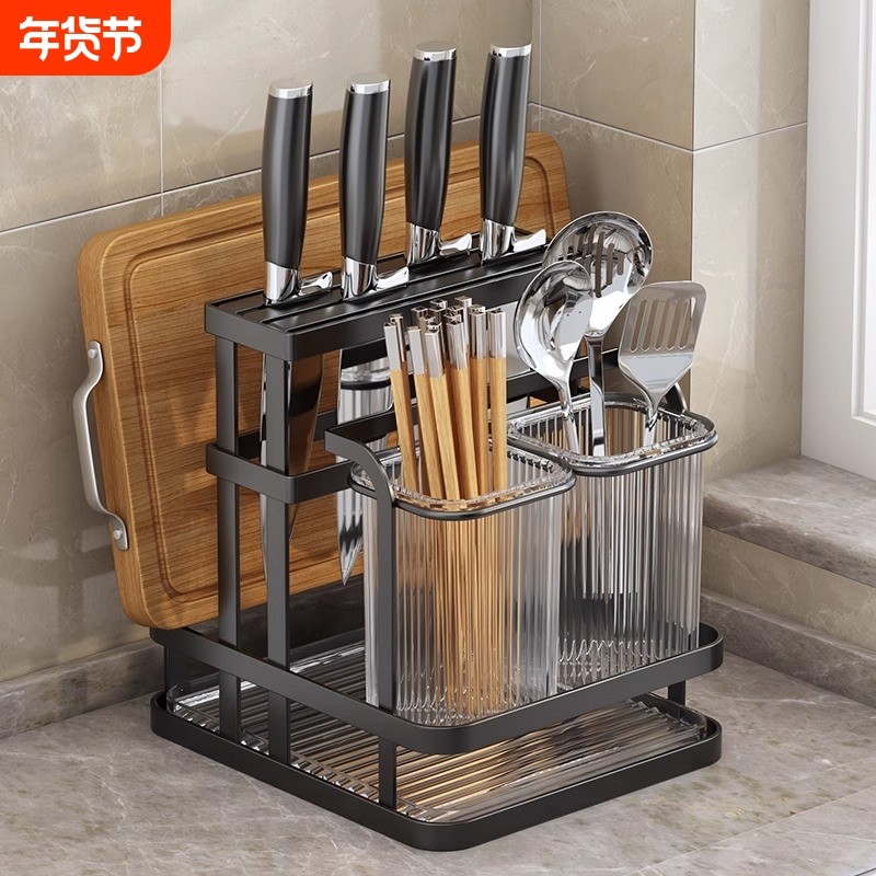📚 厨房刀架筷子笼置物架壁挂多功能架台面放砧板菜板刀具一体收纳架