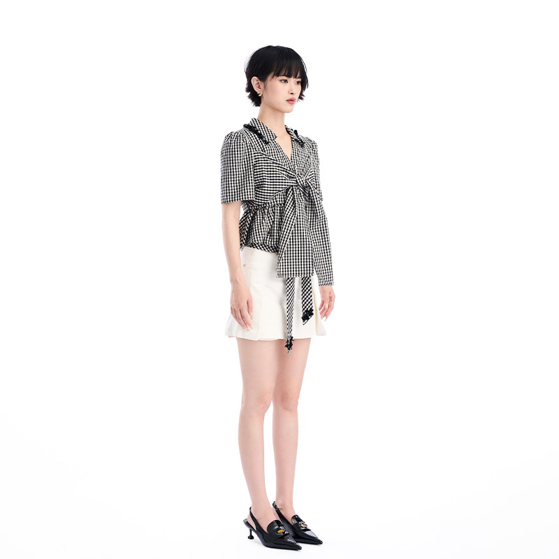 👗一袭短袖衬衫上衣,轻盈的绑带设计,优雅又时尚。穿上它,仿佛整个夏天都变得温柔起来。短款设计,轻松秀出修长美腿,让你在人群中脱颖而出。