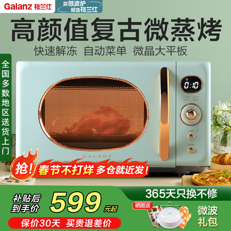 📚 政府补贴格兰仕微波炉小型迷你高颜值复古蒸烤箱一体家用光波官方