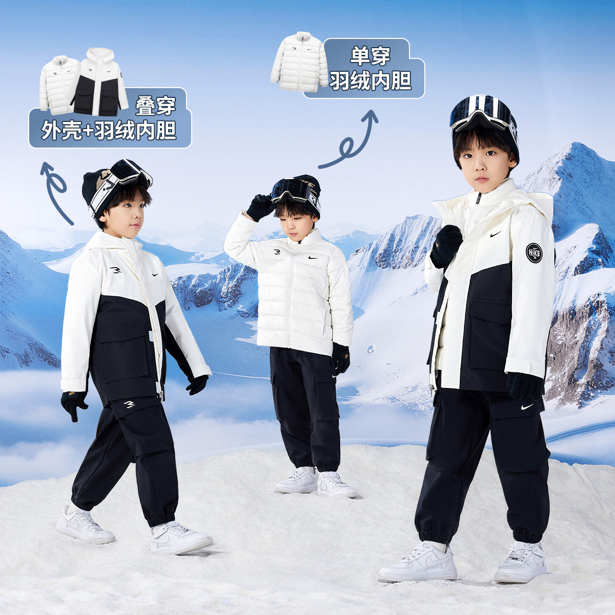 📚 【三合一】Nike 3brand儿童羽绒服棉服套装男女童保暖棉衣冬季厚