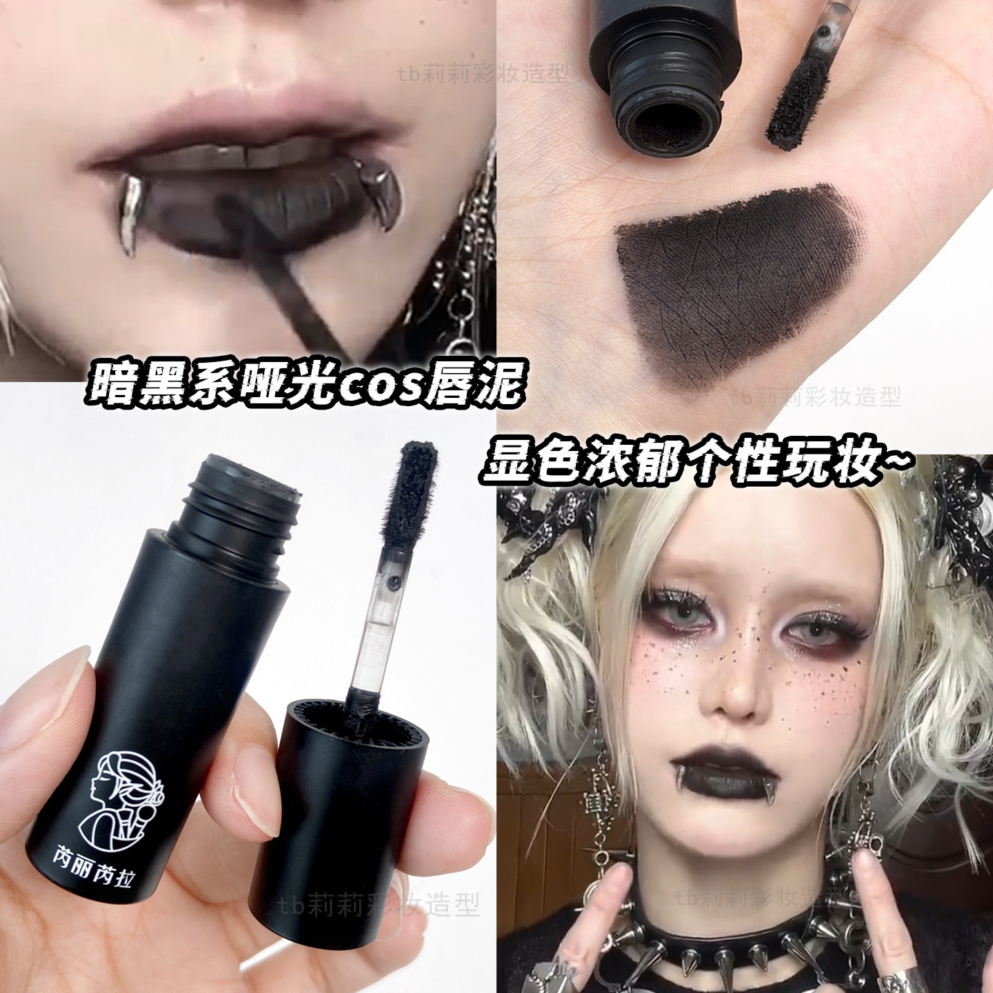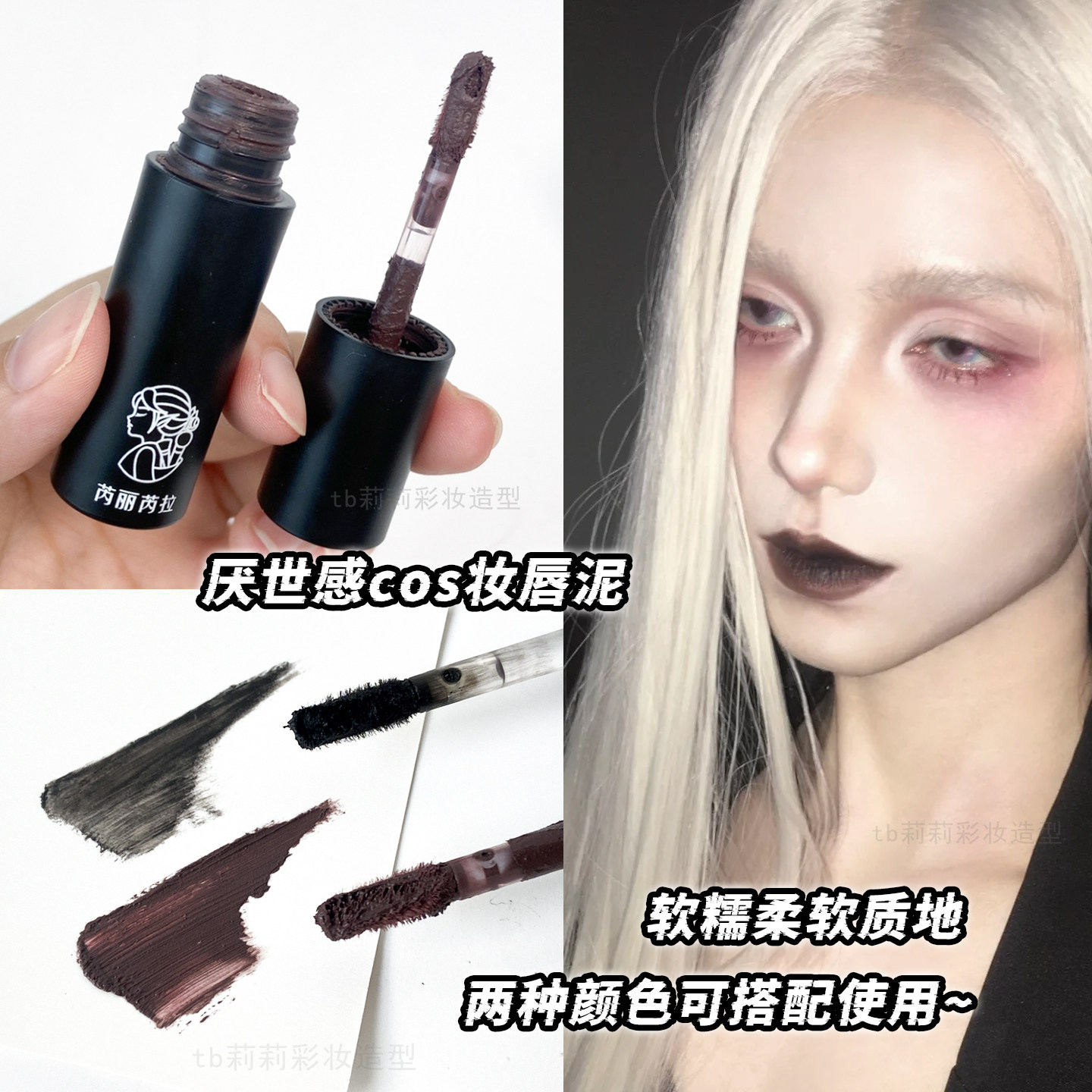 📚 黑色口红紫色化妆COS妆暗黑系唇膏宁静同款万圣节深色特效妆唇泥