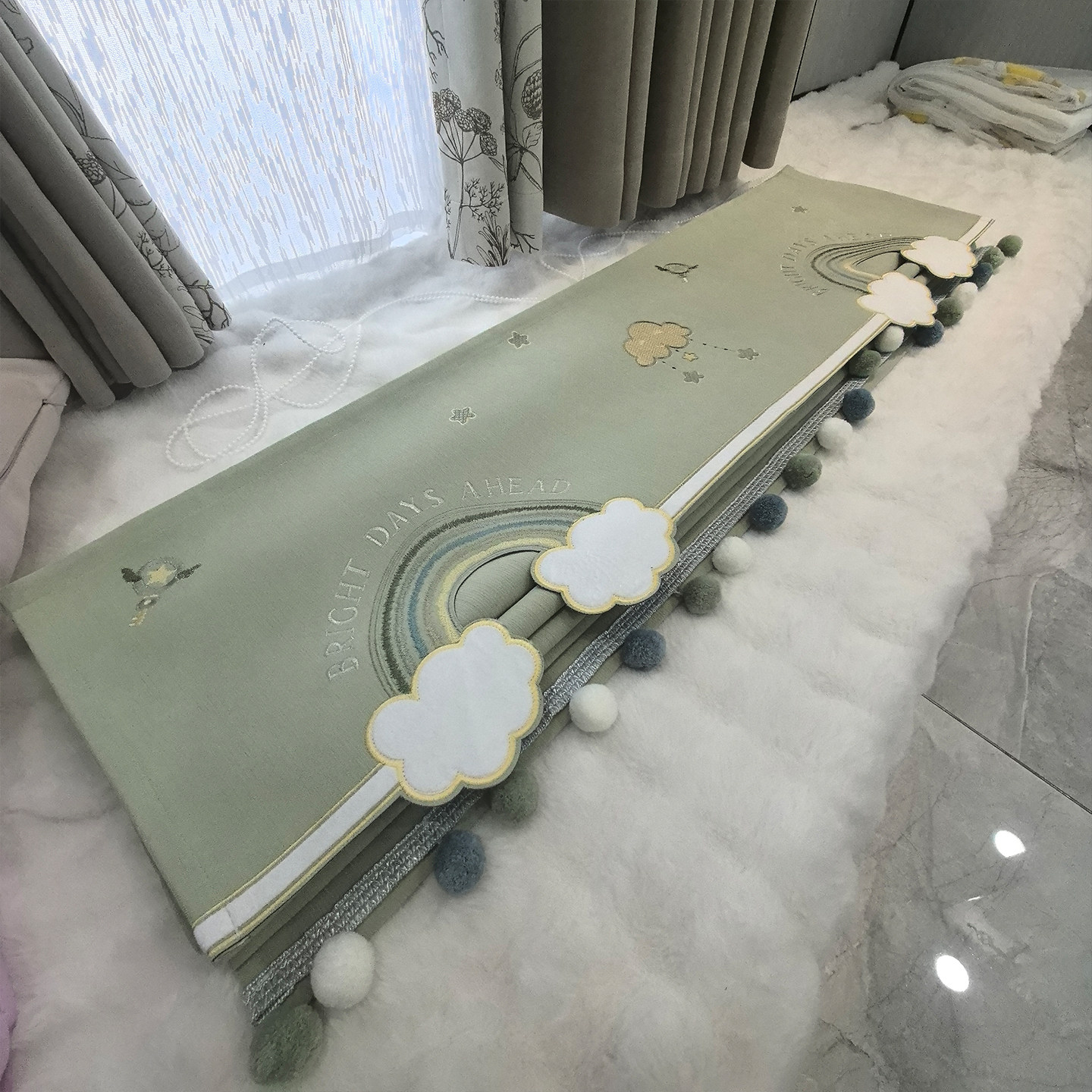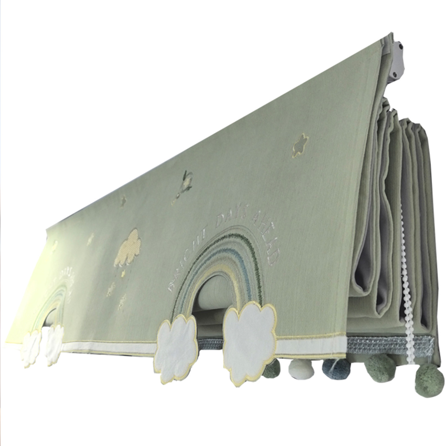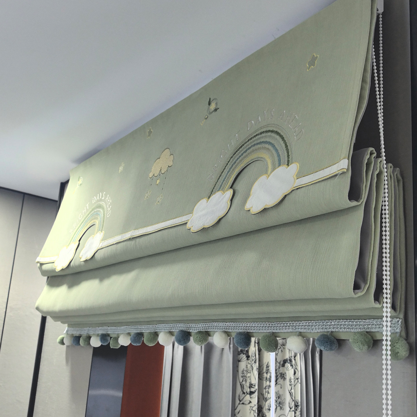 📚 儿童房罗马帘升降帘男孩卧室绿色彩虹云朵加厚遮光卡通雪尼尔布料