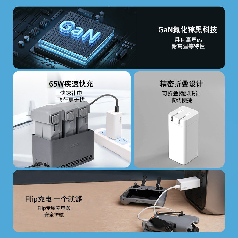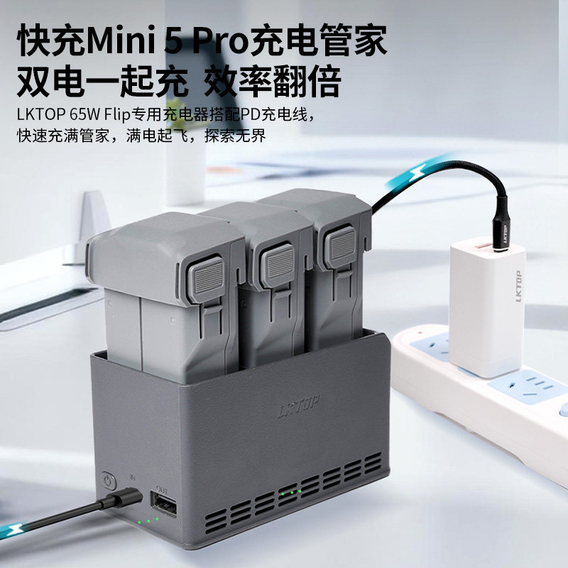 📚 LKTOP立可拓65W充电器适用大疆Mini5Pro/Mini4Pro/Mini3/Flip/Neo2无人机专用充电头PD快充头 大疆无人机配件