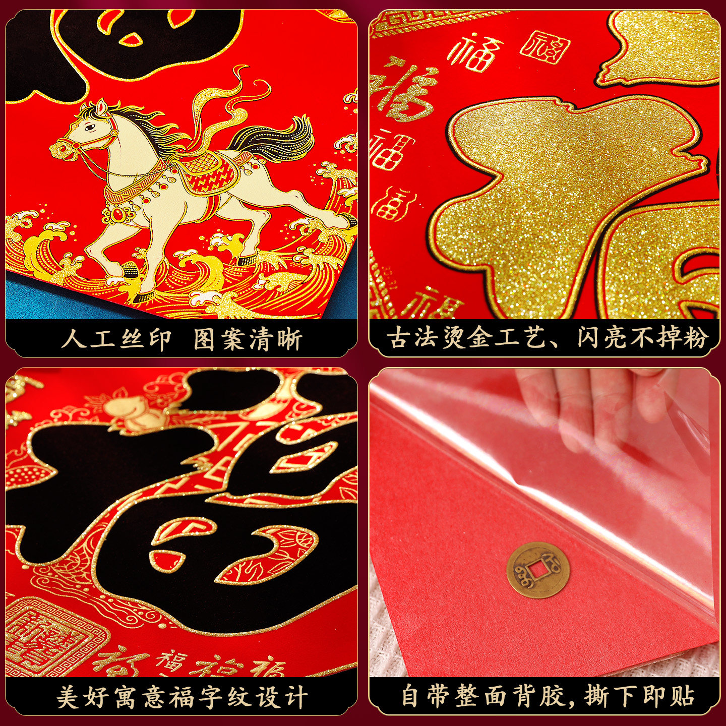 📚 福字门贴2026新款马年春节过年高档绒布背胶立体入户大门福字贴