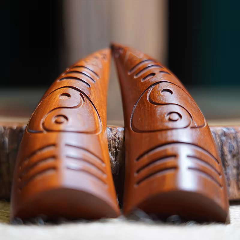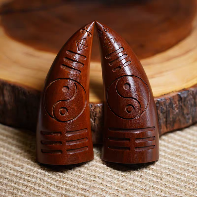📚 天然雷击枣木牛角卦法卦道家用品法器圣杯圣卦纯手工八卦摆件木雕