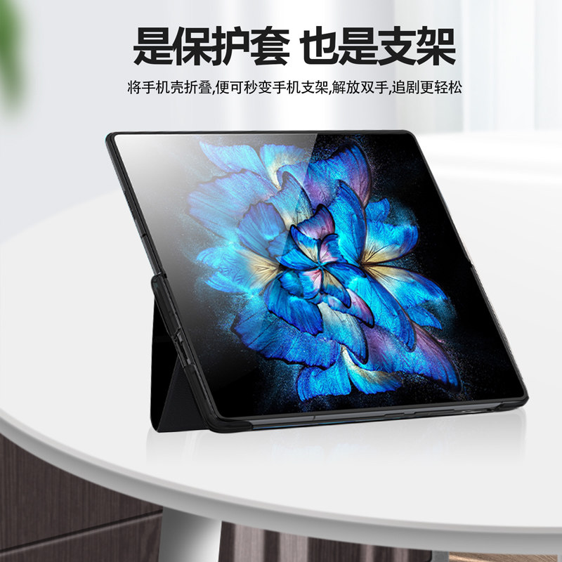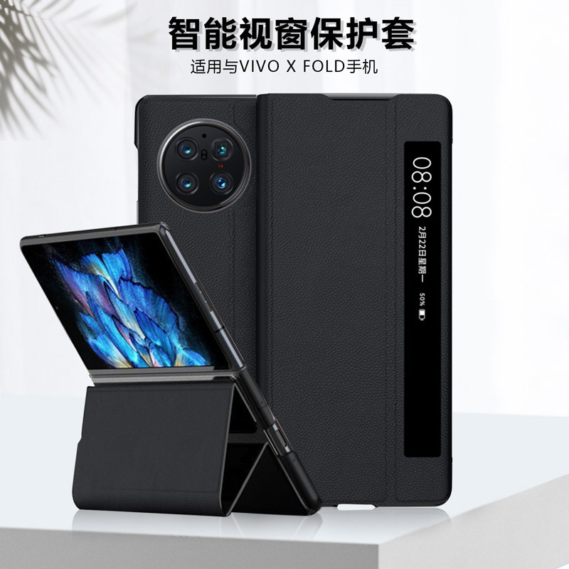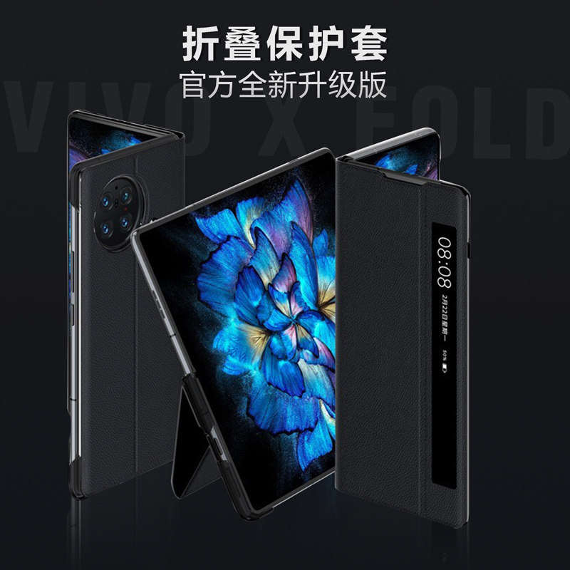 📚 适用于 vivo X Fold手机壳素皮支架款皮套超薄荔枝纹vivi xfold1代全包防摔时尚个性可来电接听电话智能XFOLD