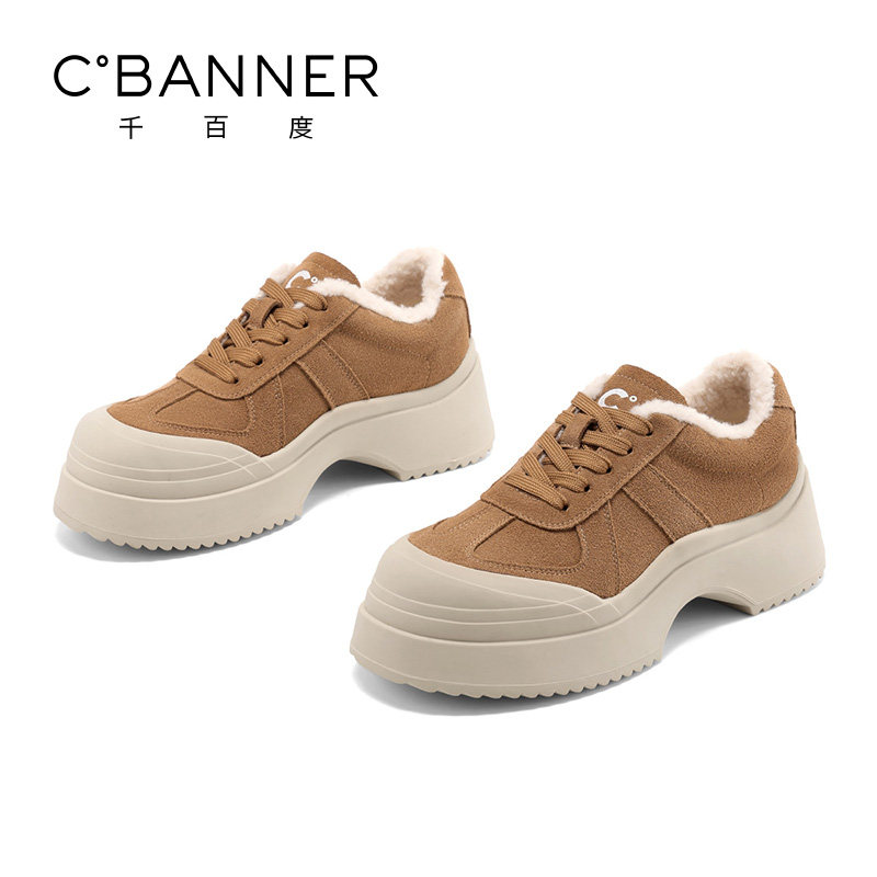 #千百度女鞋 #冬季新款 #保暖加绒棉鞋 #松糕厚底 #舒适休闲运动 #增高鞋子 #优惠活动