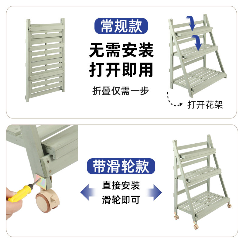 📚 实木阳台花架子落地式可折叠移动靠墙室内多肉阶梯花盆植物置物架
