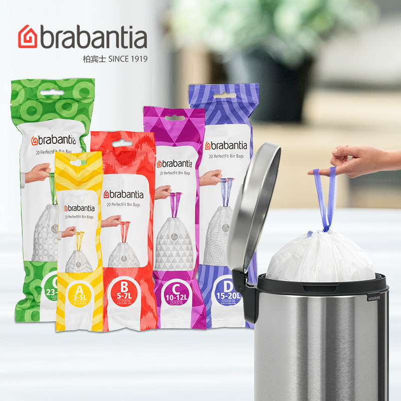 📚 brabantia柏宾士30L垃圾袋家用手提式抽绳加厚塑料袋大号免撕12L