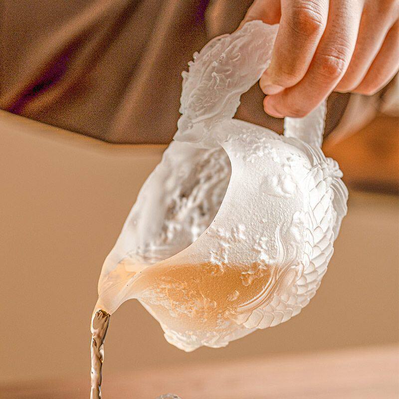 📚 浮雕龙纹公道杯古法琉璃公杯分茶器泡茶倒茶器功夫茶茶海匀杯YG