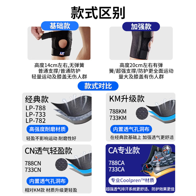 📚 LP护膝运动男788膝盖专业羽毛球徒步登山女髌骨带半月板损伤733CA