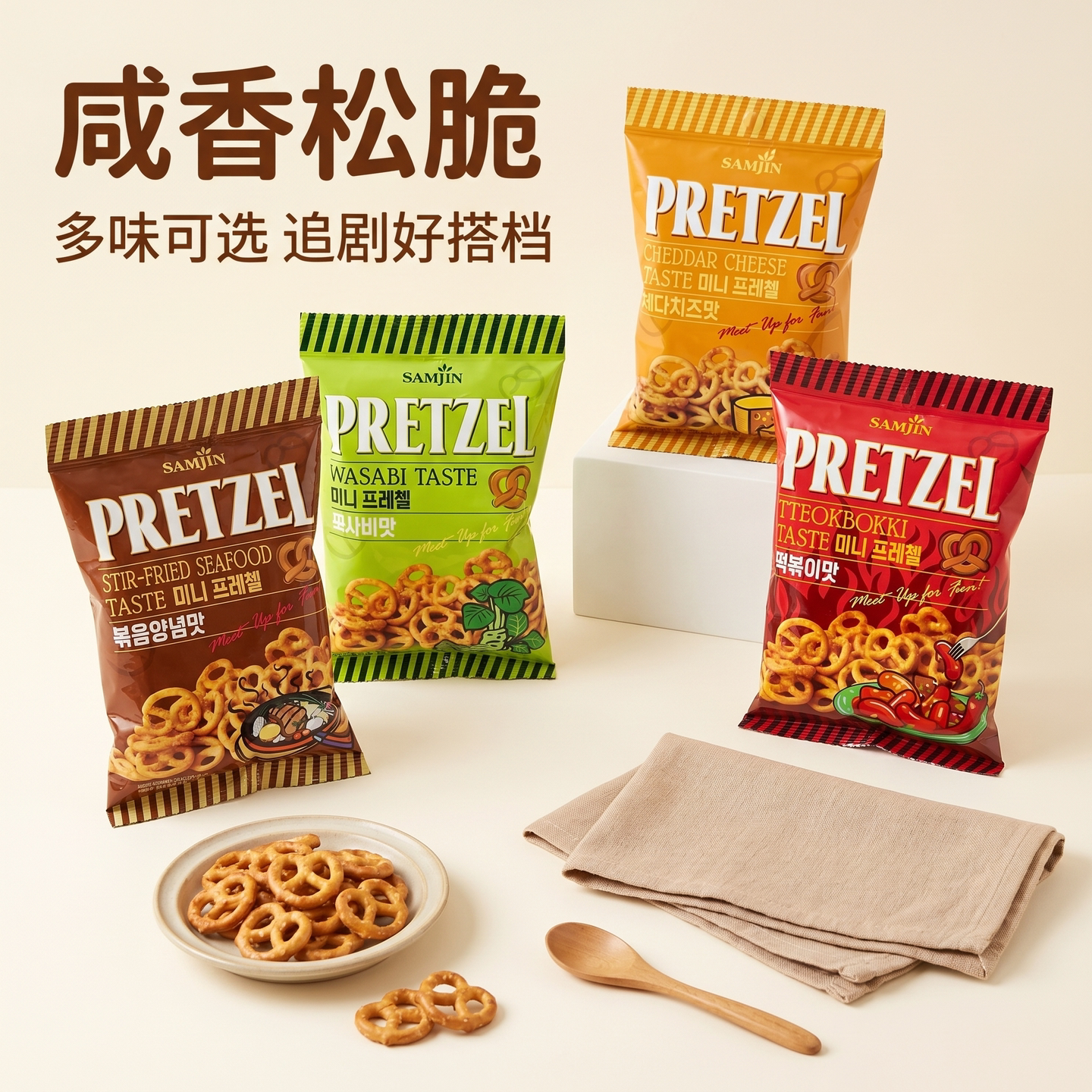 📚 韩国进口SAMJIN三进蝴蝶形酥脆饼干芝士味芥末味海鲜味饼干70g