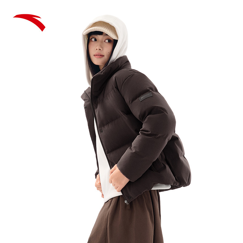 📚 安踏羽绒服女装冬季新款立领短款加厚棉服舒适通勤外套女款