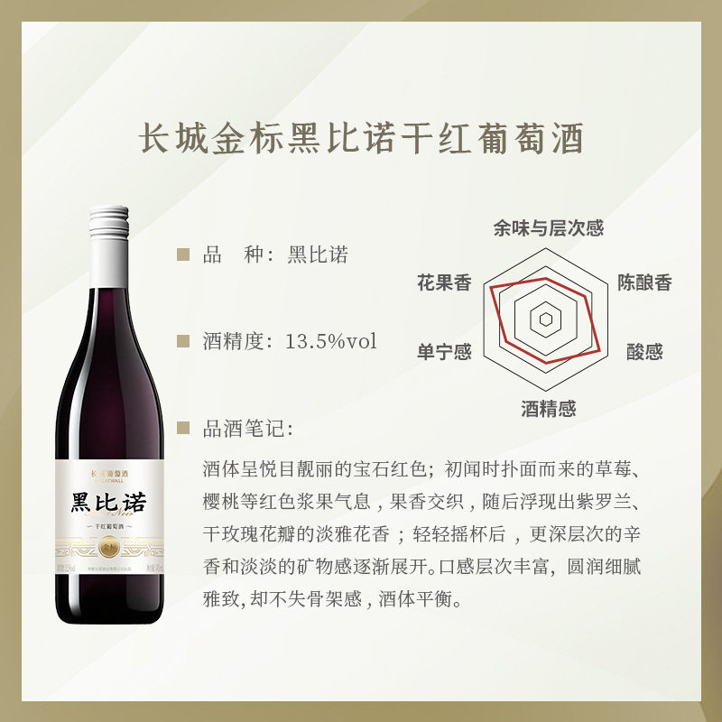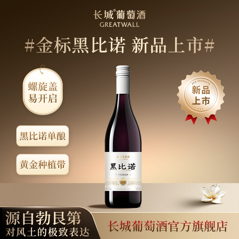 📚 金标黑比诺干红葡萄酒螺旋盖红酒745mL/瓶「长城酒官方旗舰店」