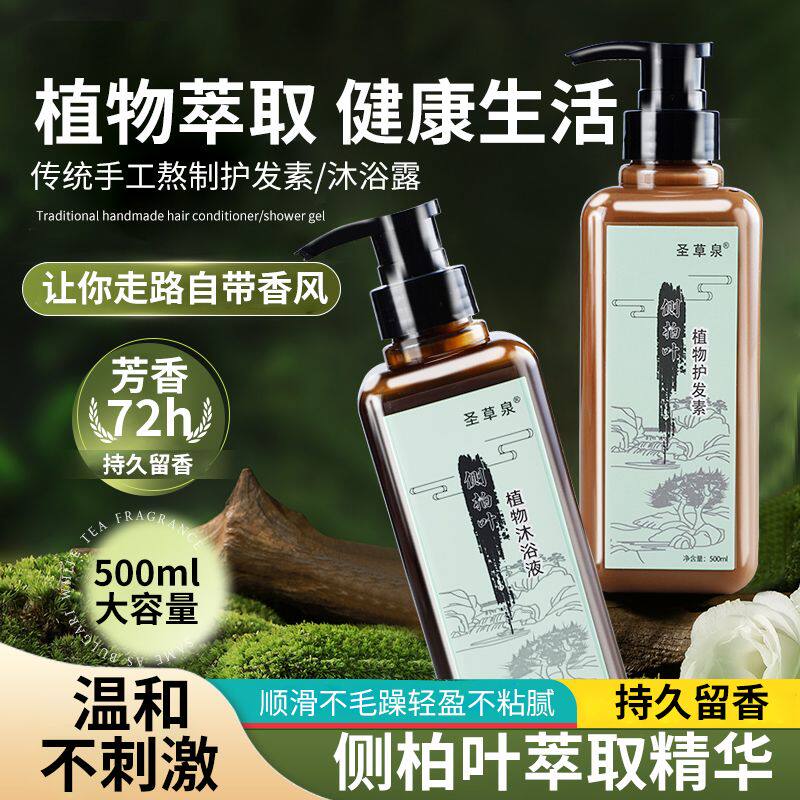 📚 圣草泉侧柏叶植物护发素沐浴露柔顺毛躁烫染修复无月桂醇茉莉留香