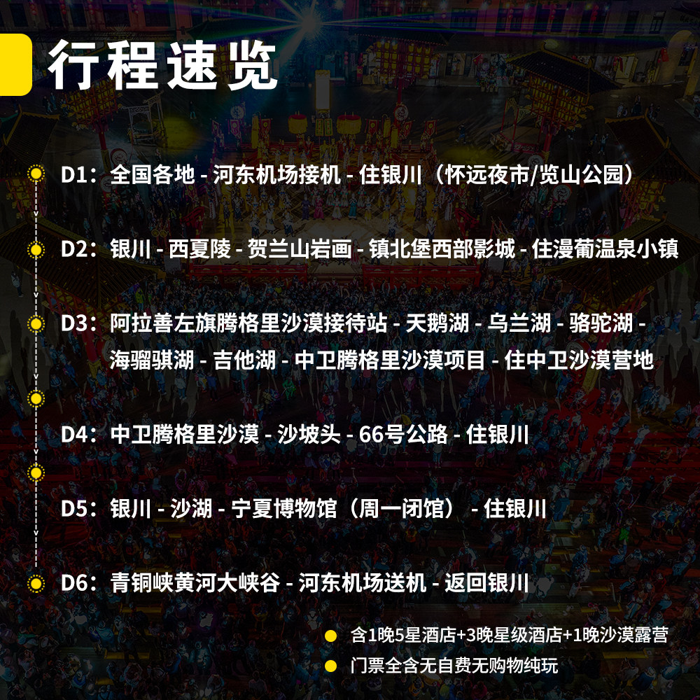 📚 宁夏银川6日5晚跟团●五湖穿越中卫腾格里沙漠露营看见贺兰沙坡头
