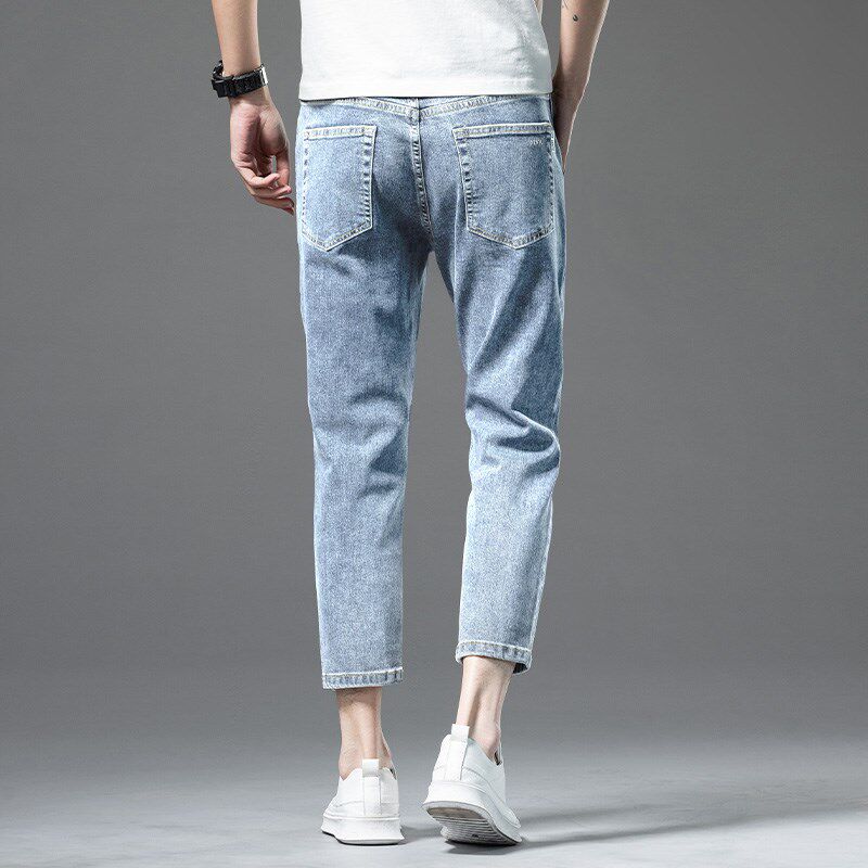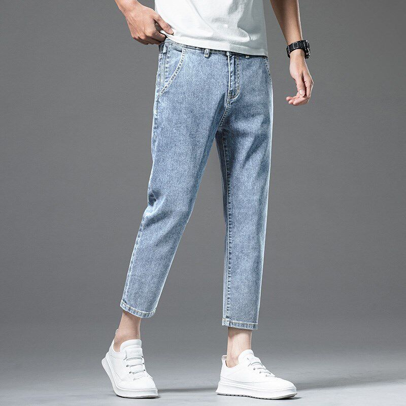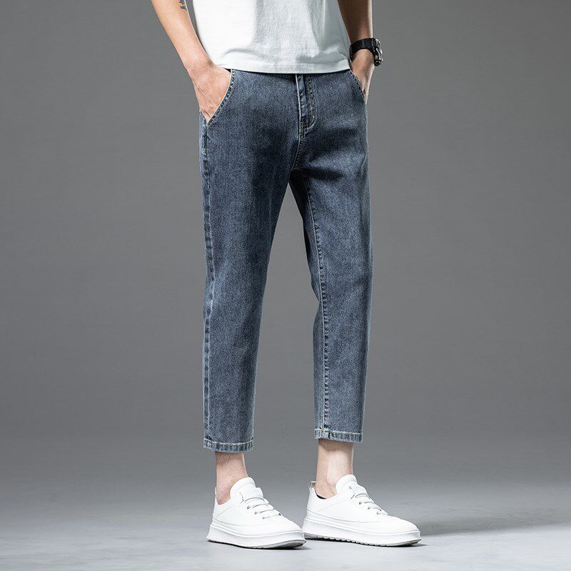 📚 8分矮小个子八分小脚牛仔裤男款修身九分男裤150高端定制加绒加厚