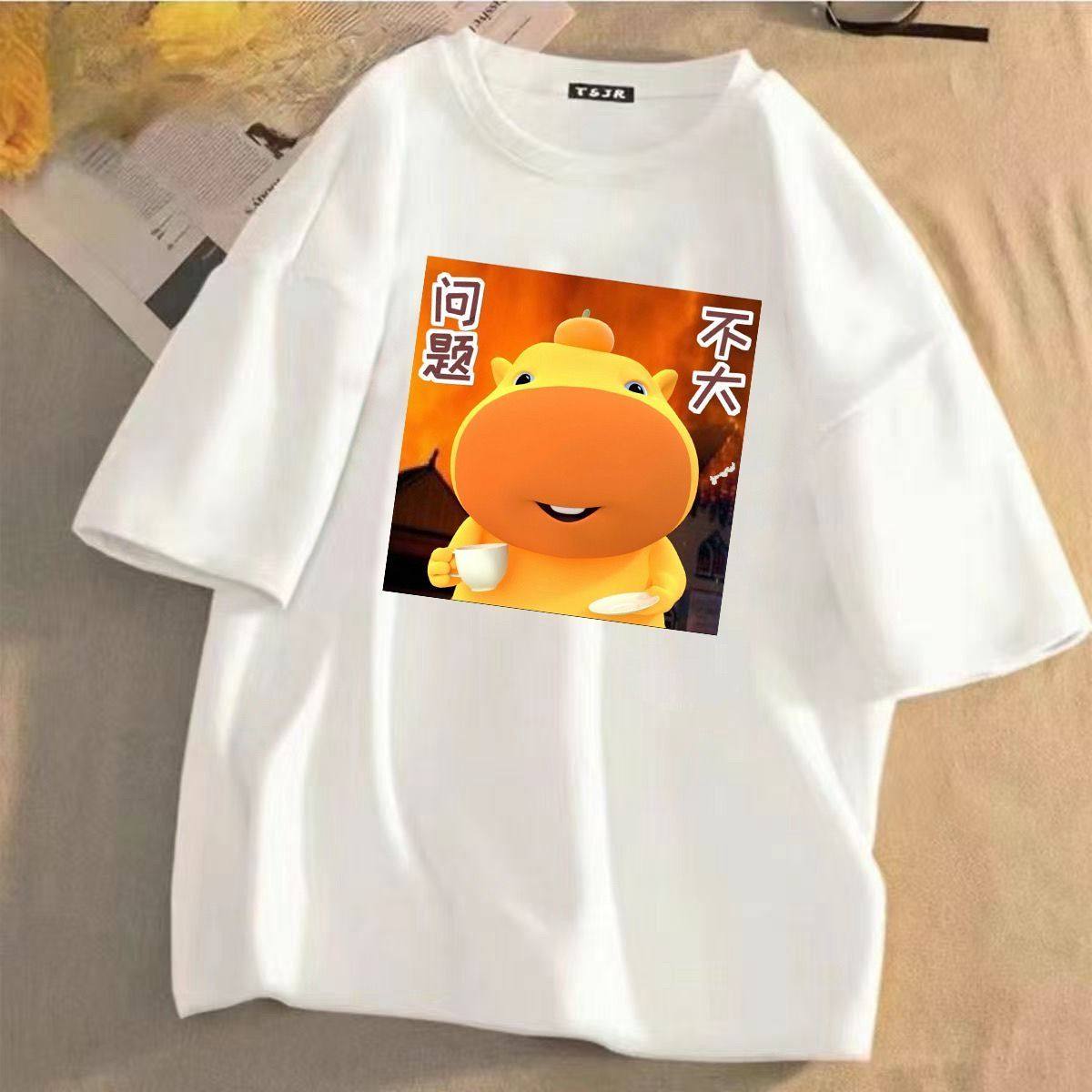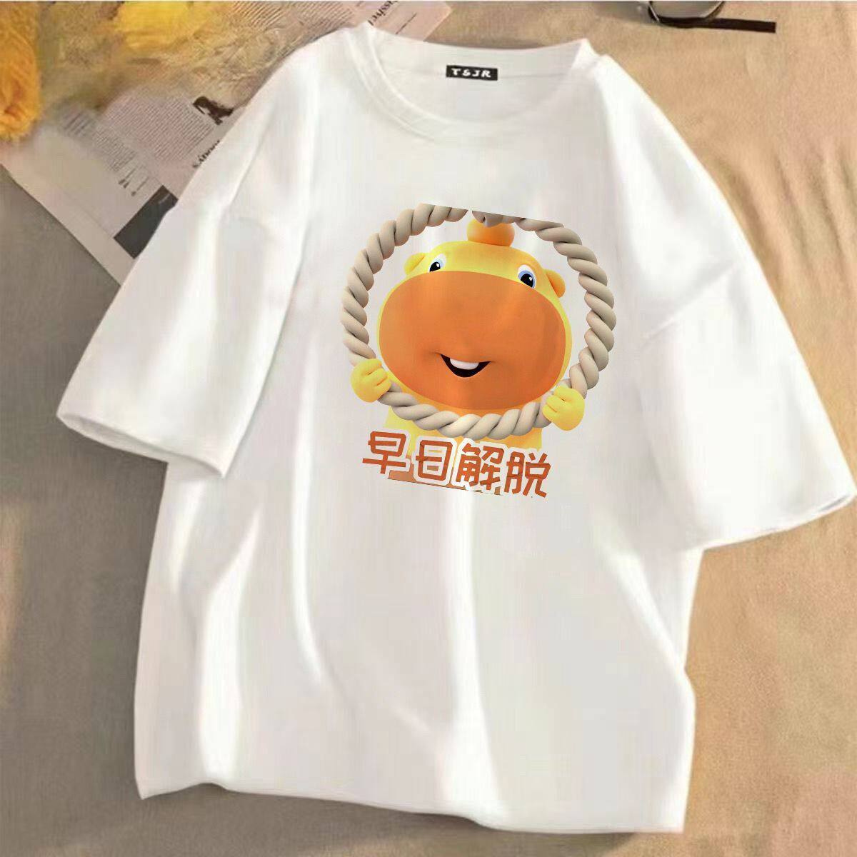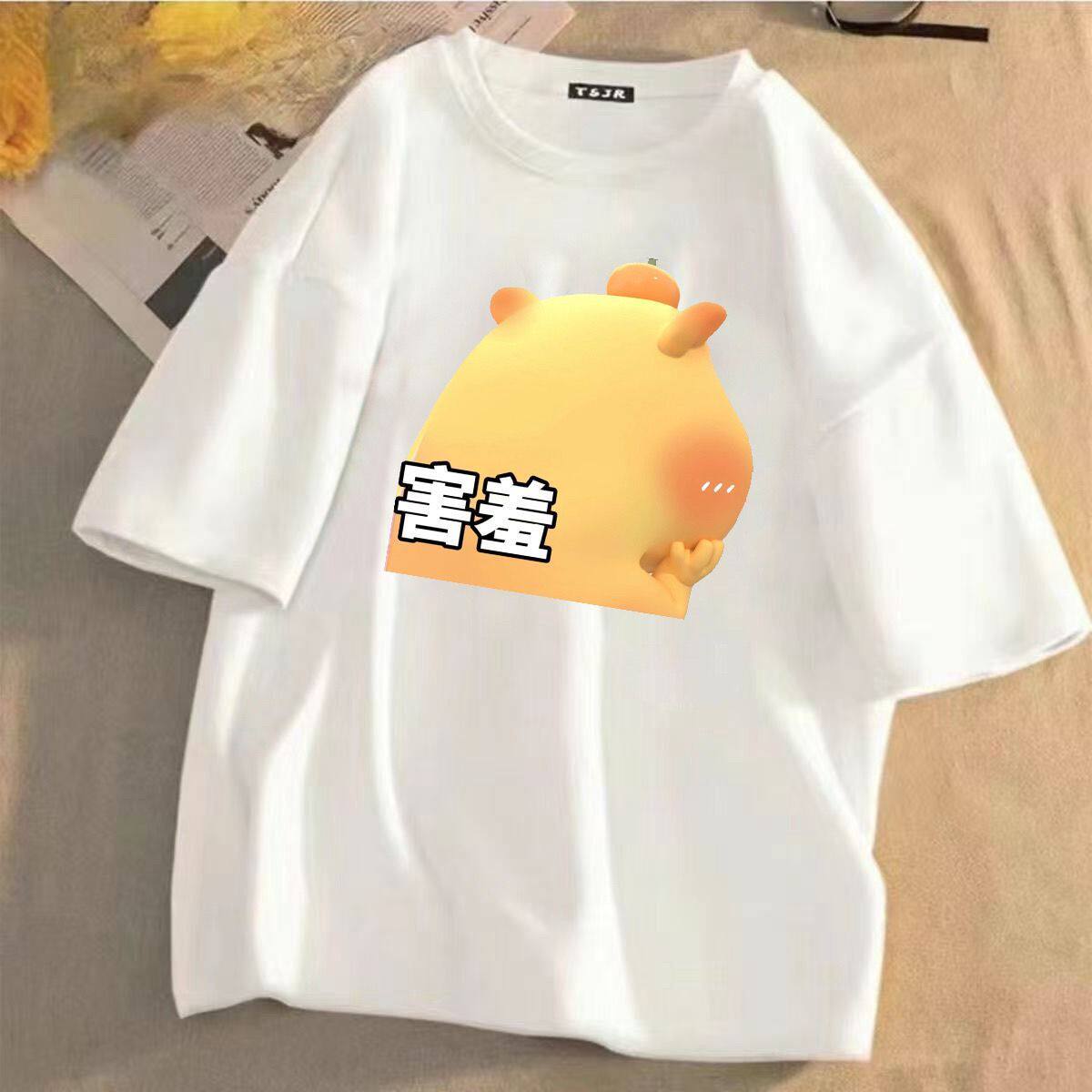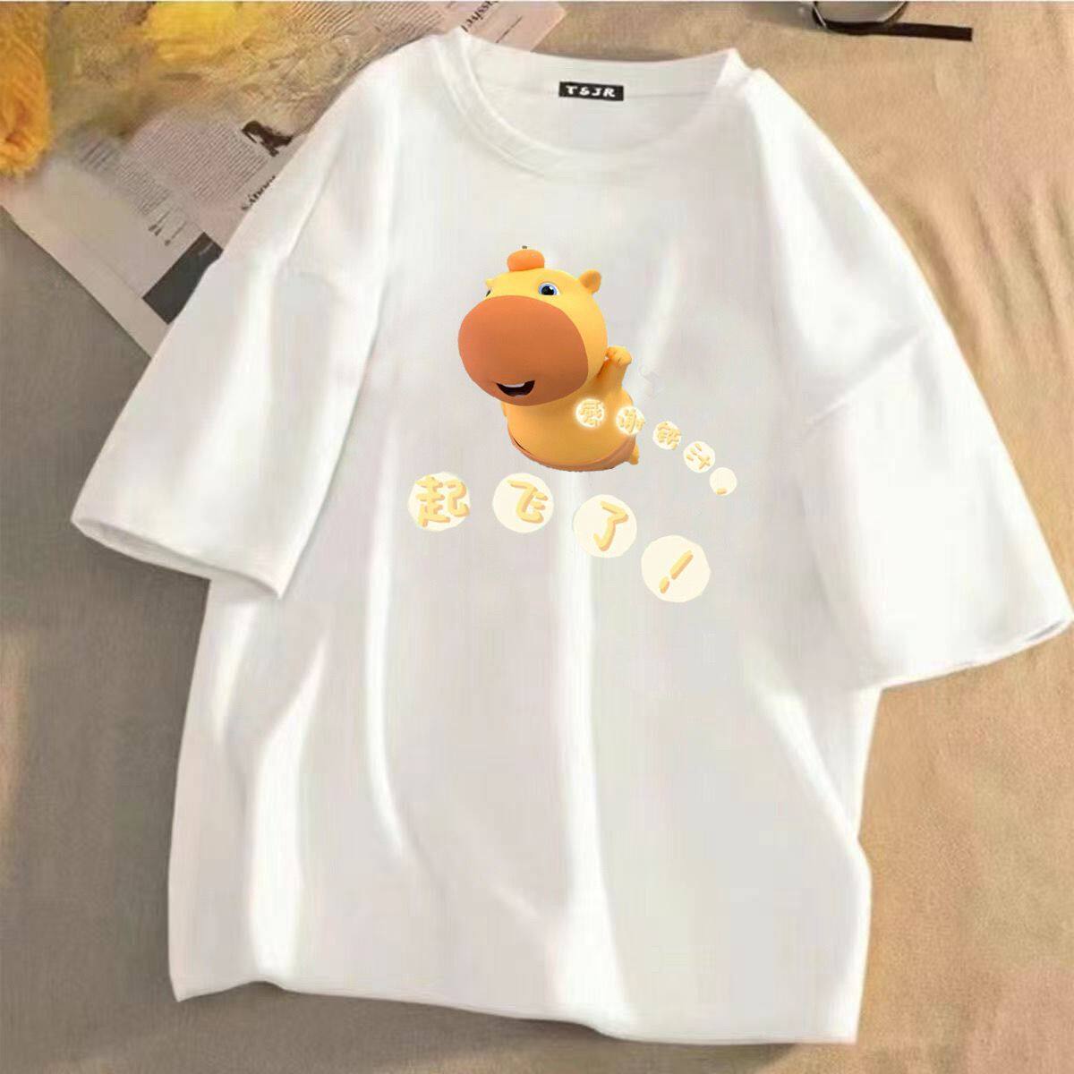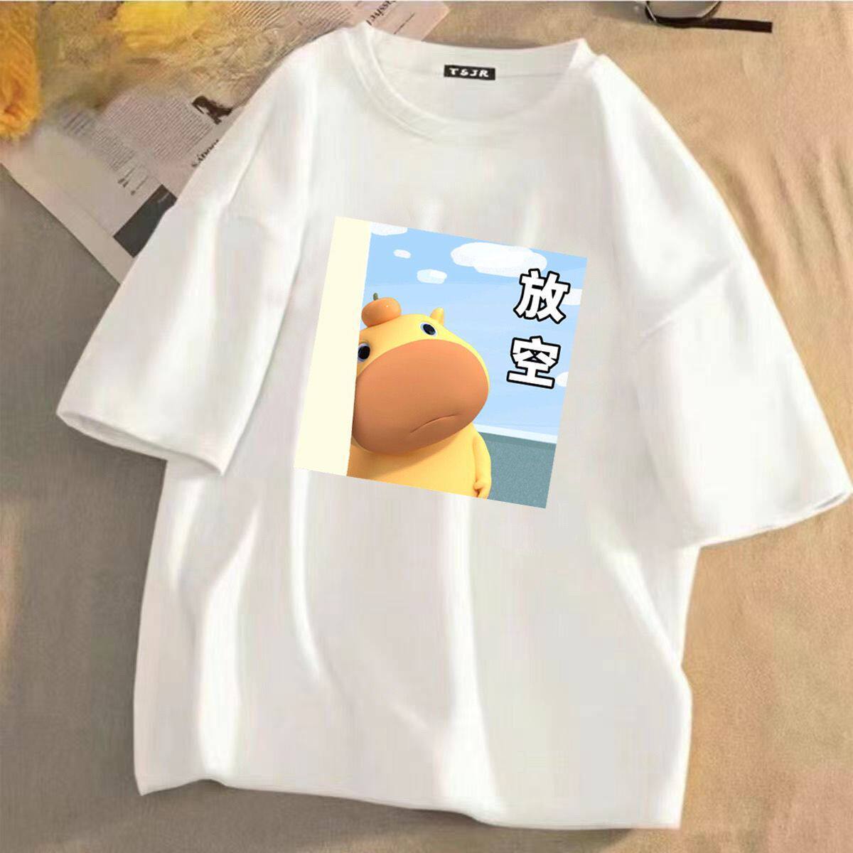 📚 夏季新款水豚噜噜印花T恤男女宽松定制上衣服学生圆领短袖t恤童装