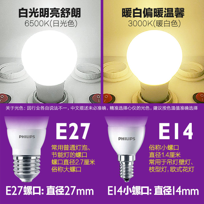 📚 飞利浦led灯泡E27 e14大小螺口家用节能灯泡超亮照明电灯球泡暖白